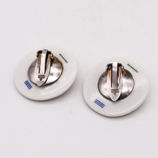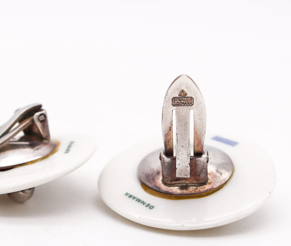 Anton Michelsen 1968 Geometric Earrings For Royal Copenhagen In Sterling & Porcelain