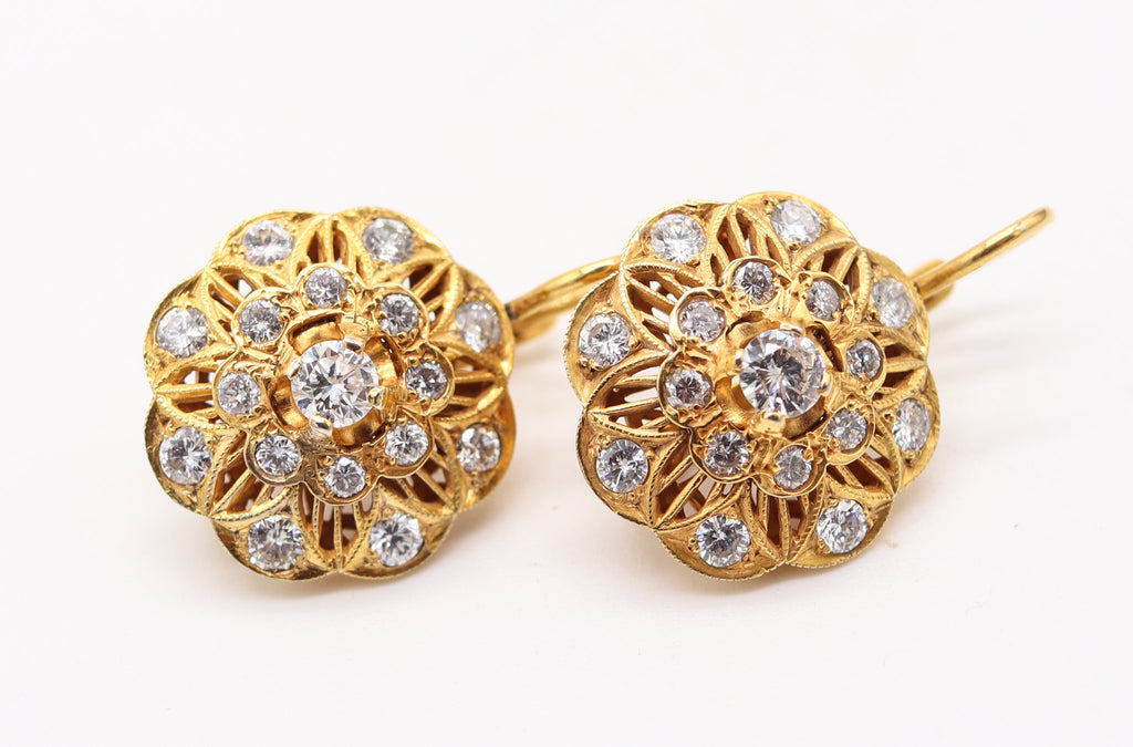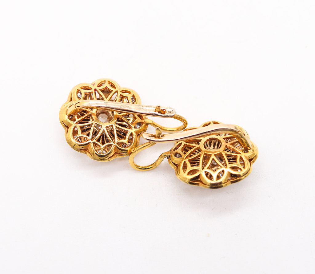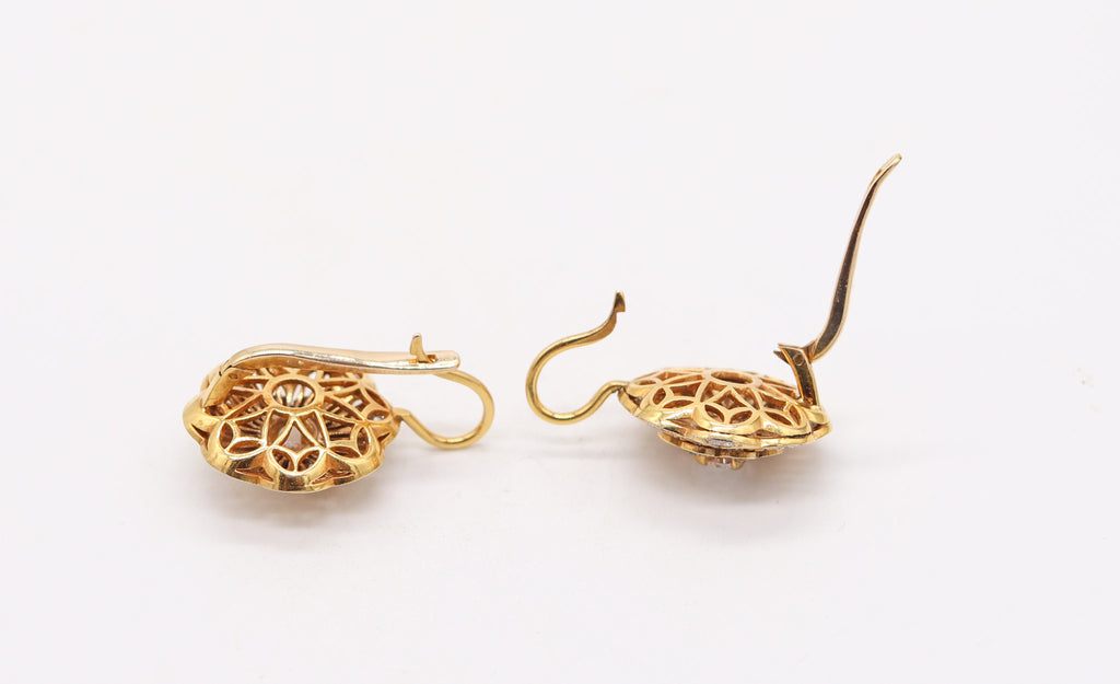 ART-DECO 1925 Italian Rosettes Dangle Earrings In 18Kt Gold With 3.26 Ctw Diamonds