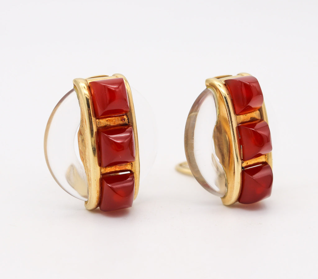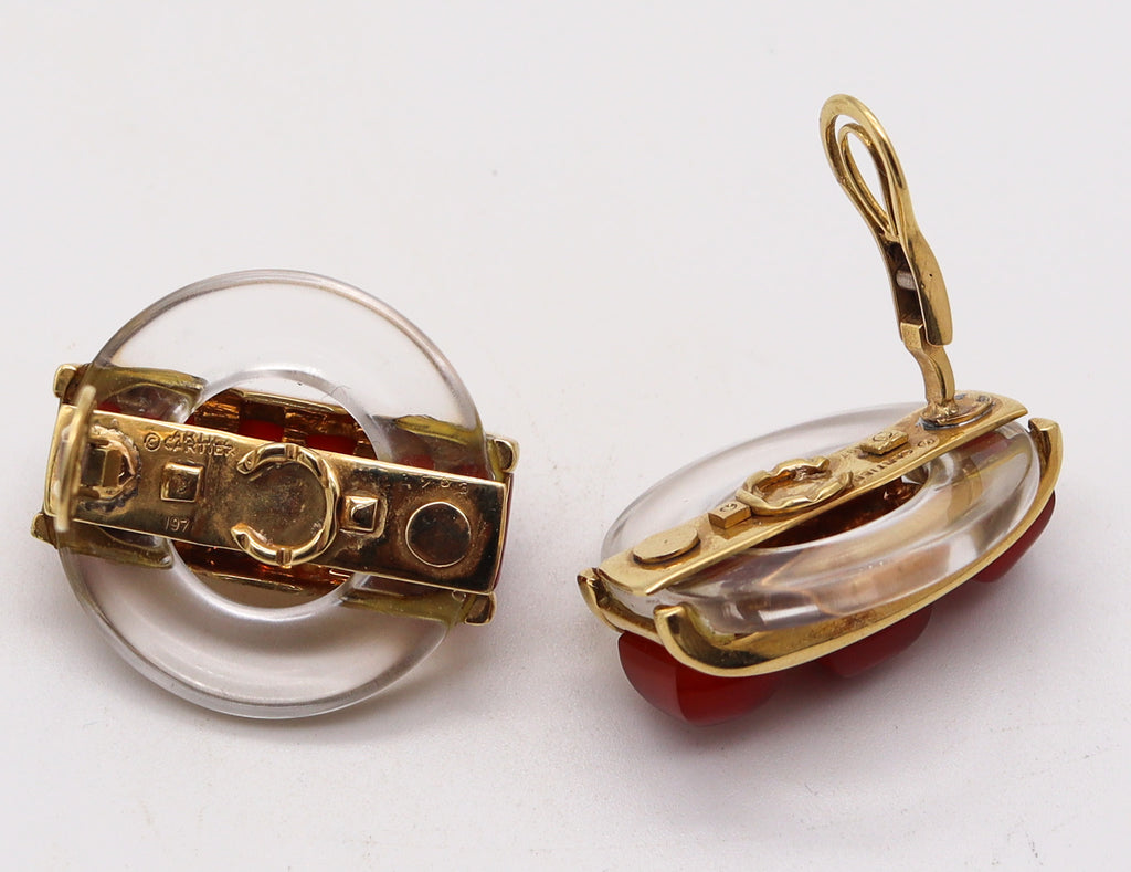 CARTIER 1973 By Aldo Cipullo Clips On Earrings In 18Kt Gold Rock Crystal & Carnelians