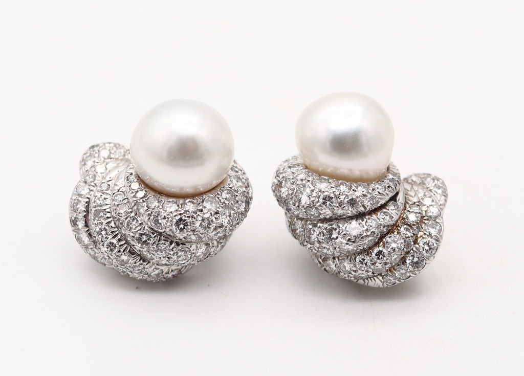 DAVID WEBB 1977 South Seas Pearls Clips-On Earrings Platinum And 8.84 Cwt Diamonds