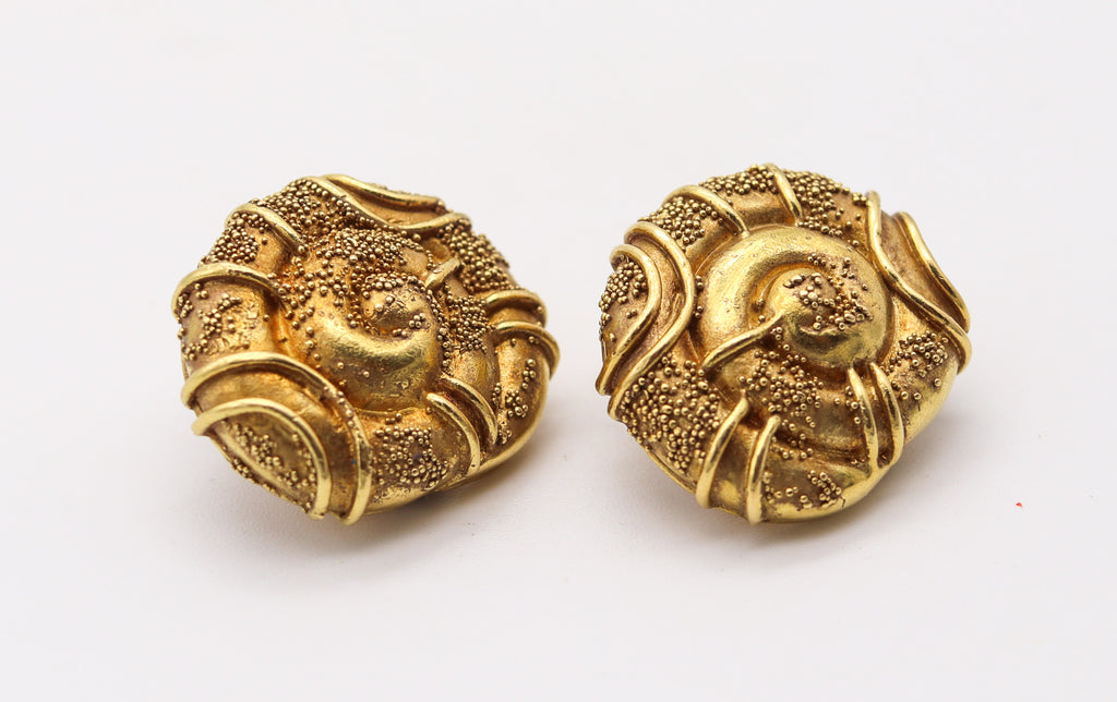 ELIZABETH GAGE Spirals Sculptural Naive Clips-On Earrings In Solid 18Kt Yellow Gold