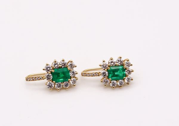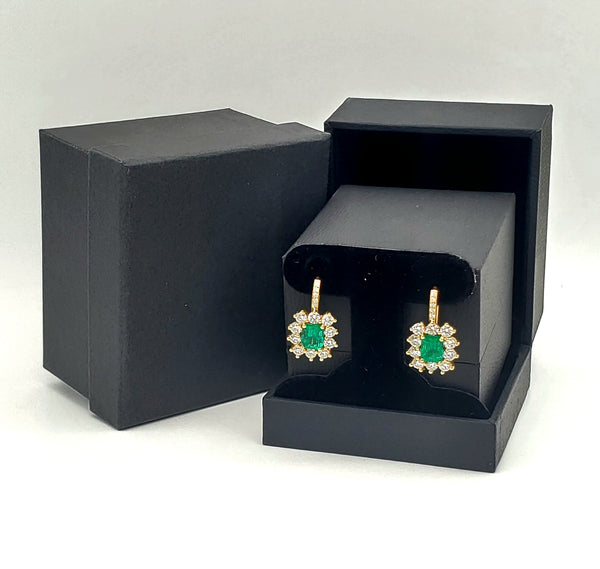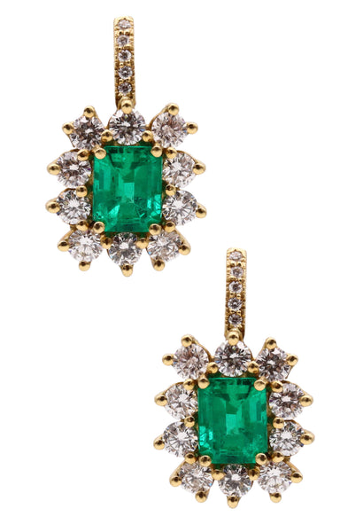 COLOMBIAN Emerald And Diamonds Earrings In 18Kt Yellow Gold With 4.92 Carats