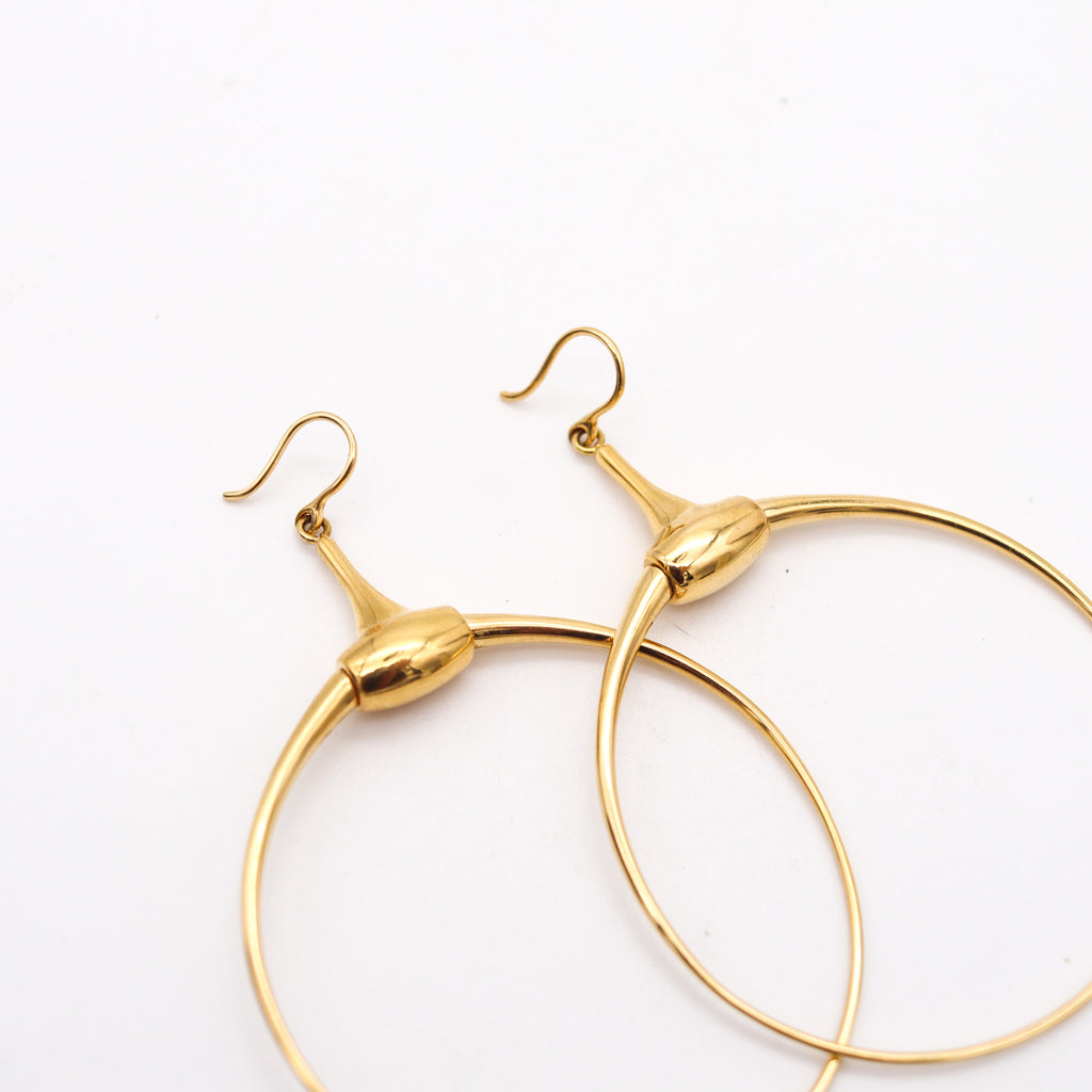 GUCCI Vintage Dangle Horse-Bits Circles Hoops Earrings In Solid 18Kt Yellow Gold