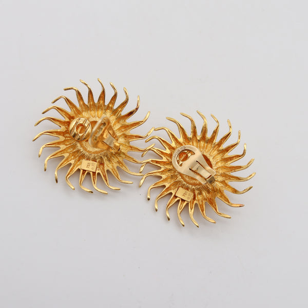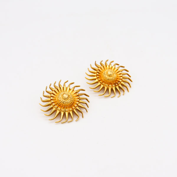 Lalaounis 1970 Hellenistic Sun Burst Clips Earrings In Solid 18Kt Yellow Gold