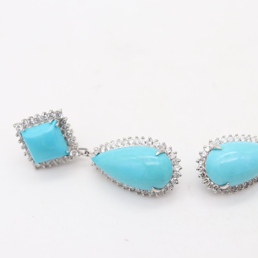 Pair of convertible day & night dangle earrings with turquoises.