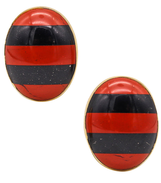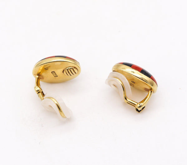 Tiffany And Co. 1977 By Ralph Lauren Geometric Clips Earrings In 18Kt Gold With Inlaid Gems
