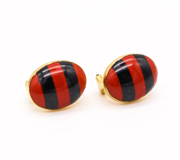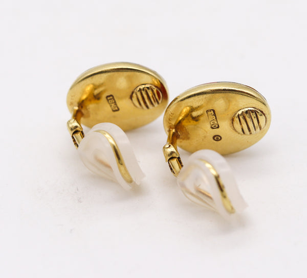 Very rare pair created in New York city by Ralph Lauren for the Tiffany Studios back in the 1977. These pieces has been crafted in solid yellow gold of 18 karats with high polished finish. Fitted with omega backs for fastening clips and the addition of posts for pierced ears can be easily done.
