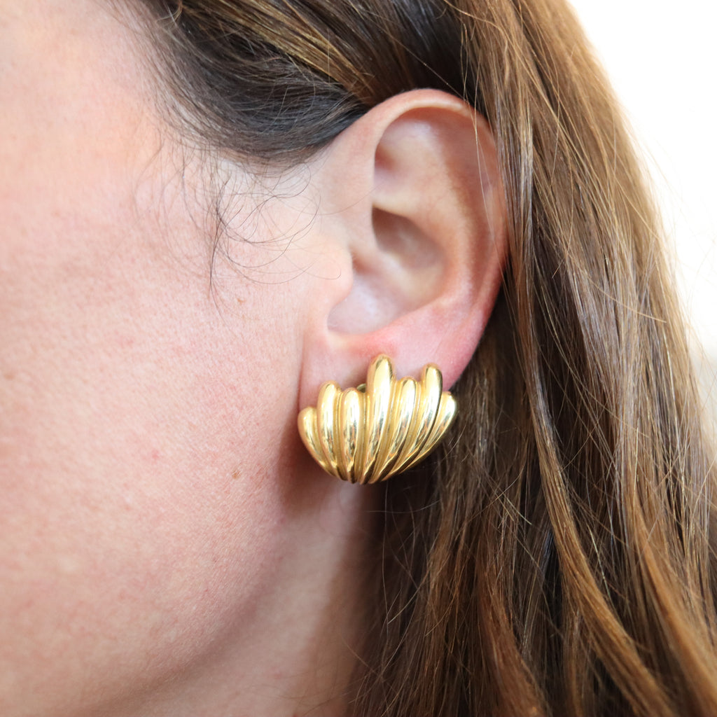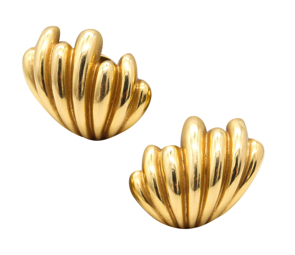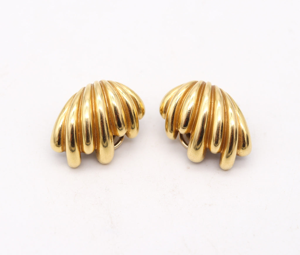 TIFFANY & CO. 1980 Modernist Scalloped Clips-On Earrings In 18Kt Yellow Gold