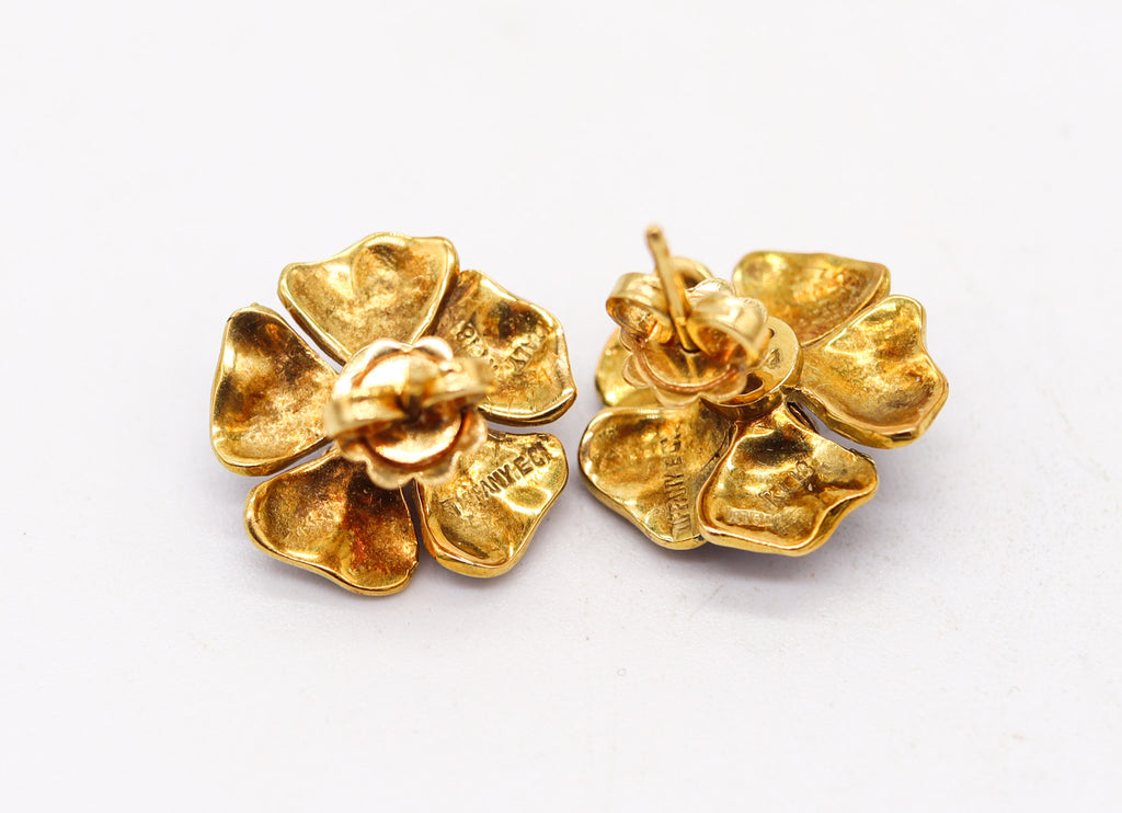 TIFFANY & CO. Blue Enameled Flowers Earrings In 18Kt Yellow Gold With VS Diamonds