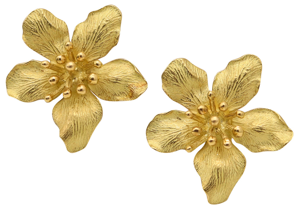 TIFFANY & CO. 1970 Flowers Clips On Earrings In Solid 18Kt Yellow Gold