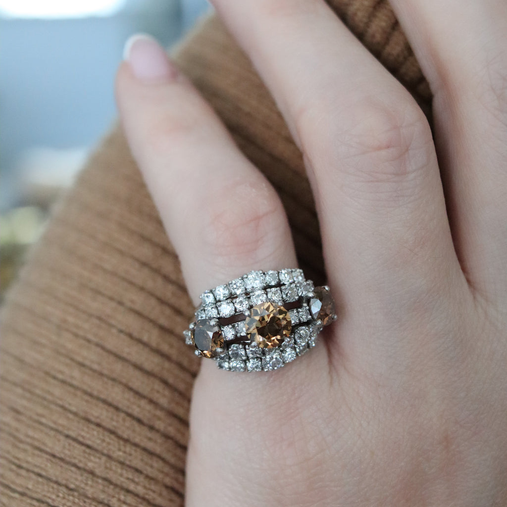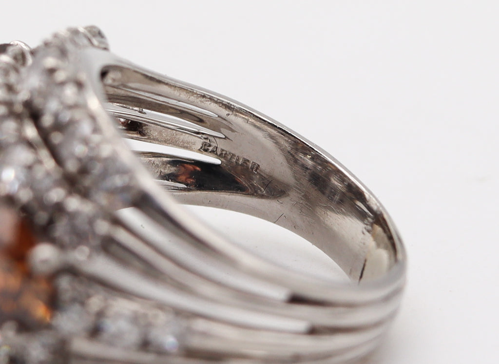 -Cartier New York 1935 Art Deco Cocktail Ring In Platinum With 5.16 Ctw Diamonds