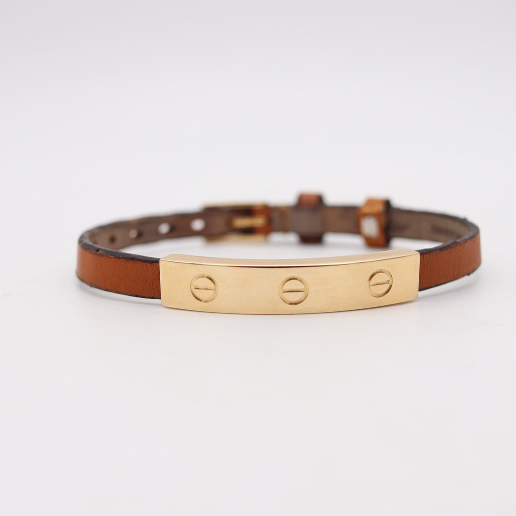 CARTIER Paris 1978 Vintage Love Leather Buckle Belt Bracelet In 18Kt Yellow Gold