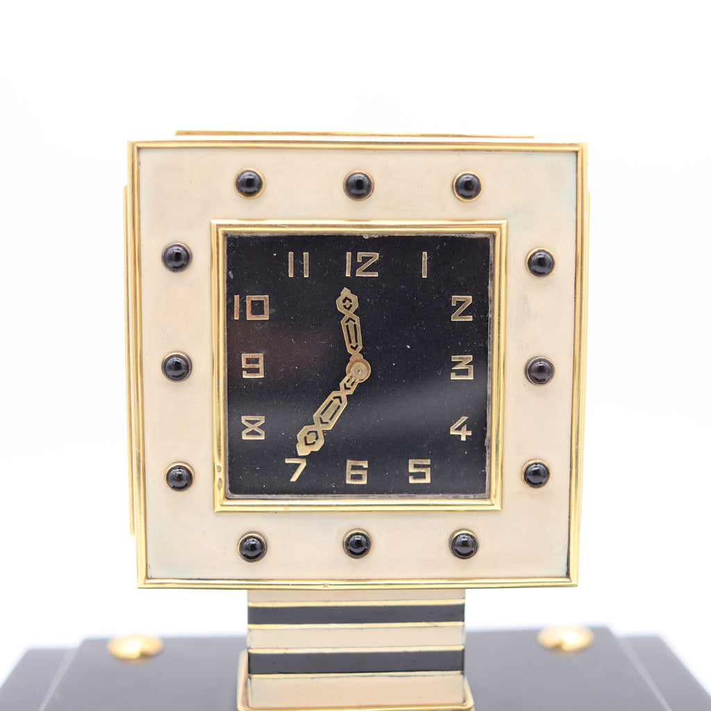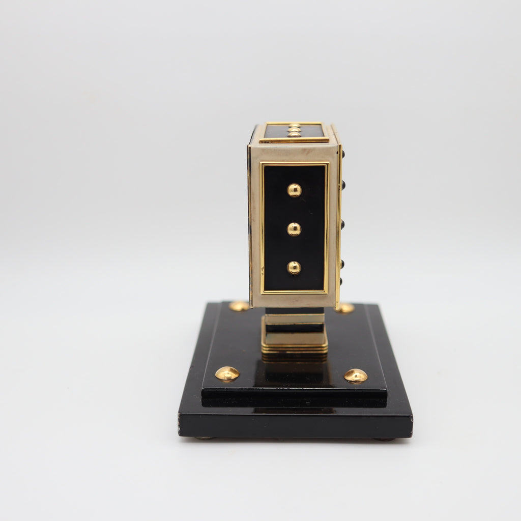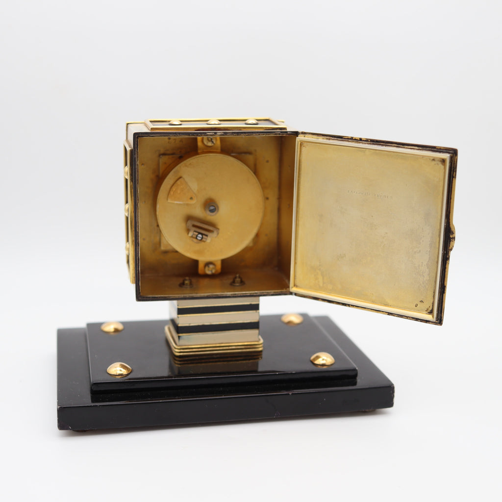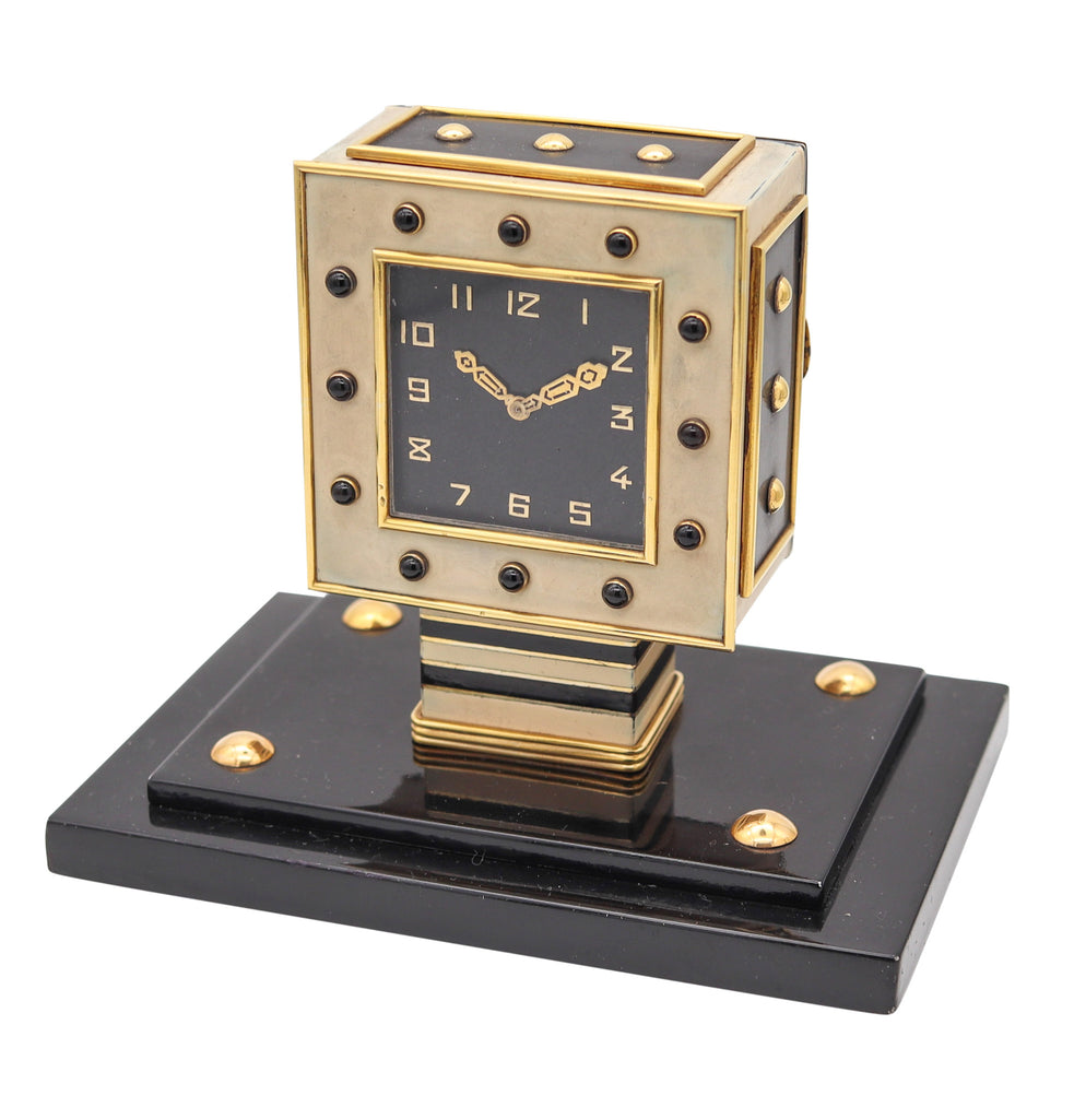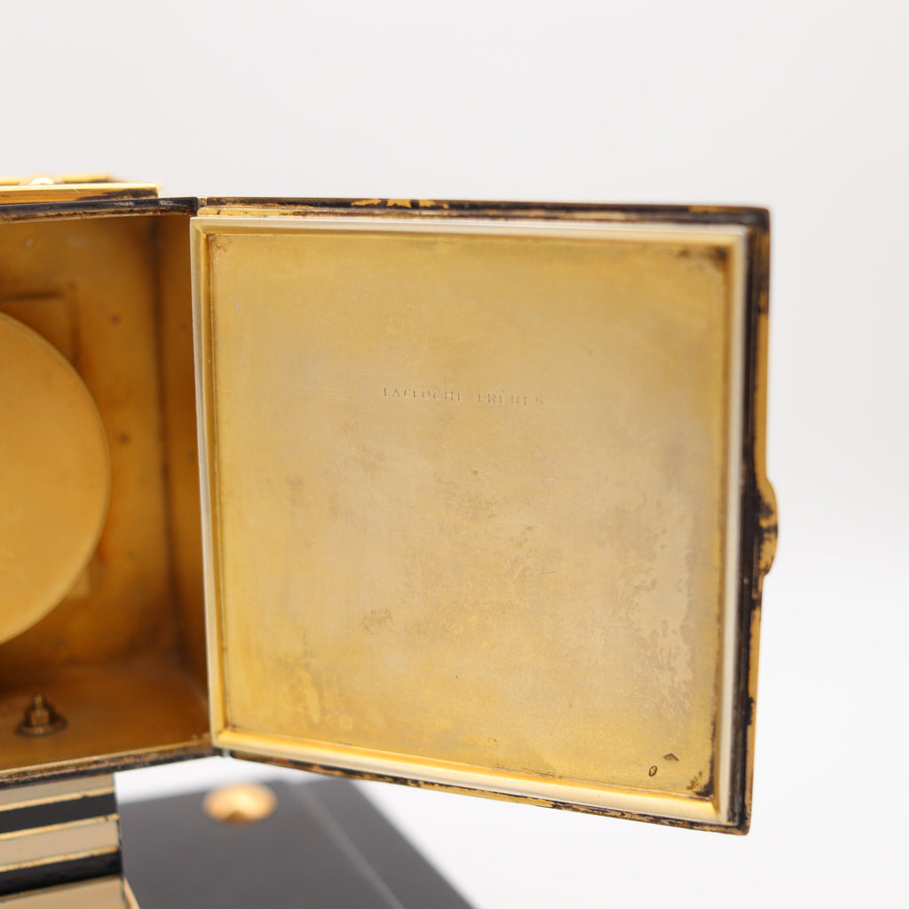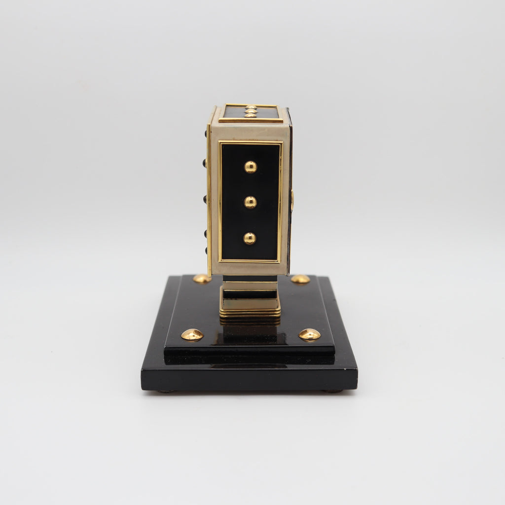 LACLOCHE FRERES Paris 1924 Art Deco Lacquered Desk Clock In 18Kt Gold With Onyx