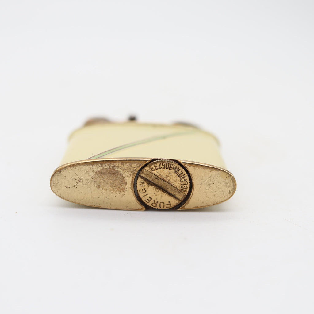 This is an original art deco pocket petrol lighter created in Germany by the Müller & Grünstein company back in 1928-1929. This pocket petrol lighter is named Stambul-Supra and crafted with a rectangular oval shape in solid gilt brass embellished with application of lacquer. This lighter is completely original and not a reproduction, has been cleaned and serviced to bring back his original splendor. This model was manufactured in three sizes; small, medium and large. This is the small variety and is a great collectable item, offered in working condition and near mint as 9 of 10.