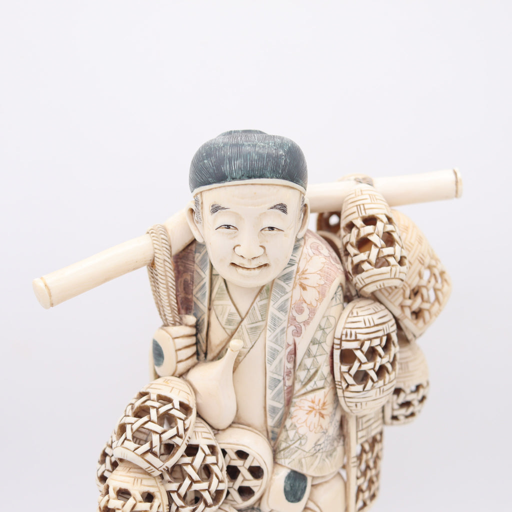 OKIMONO 1910 Japan Meiji Period Carved Sculpture Of A Basket's Seller