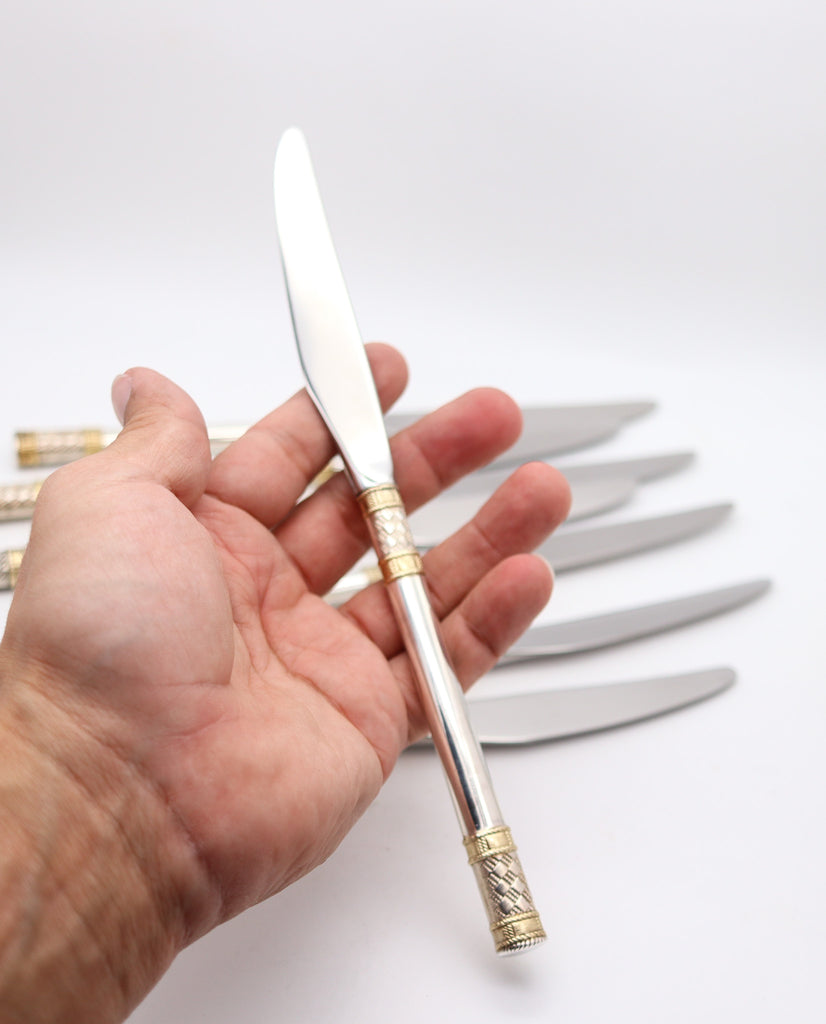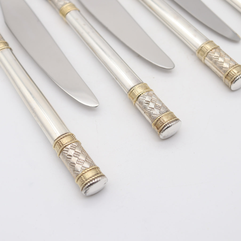 WALLACE 1971 Golden Aegean Weave Set Of Knives In .925 Sterling & Yellow Gold
