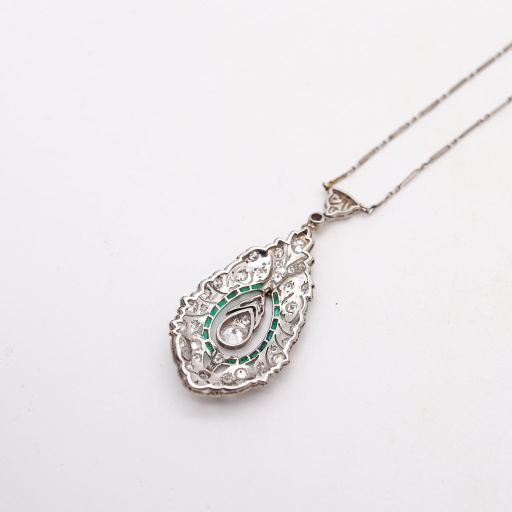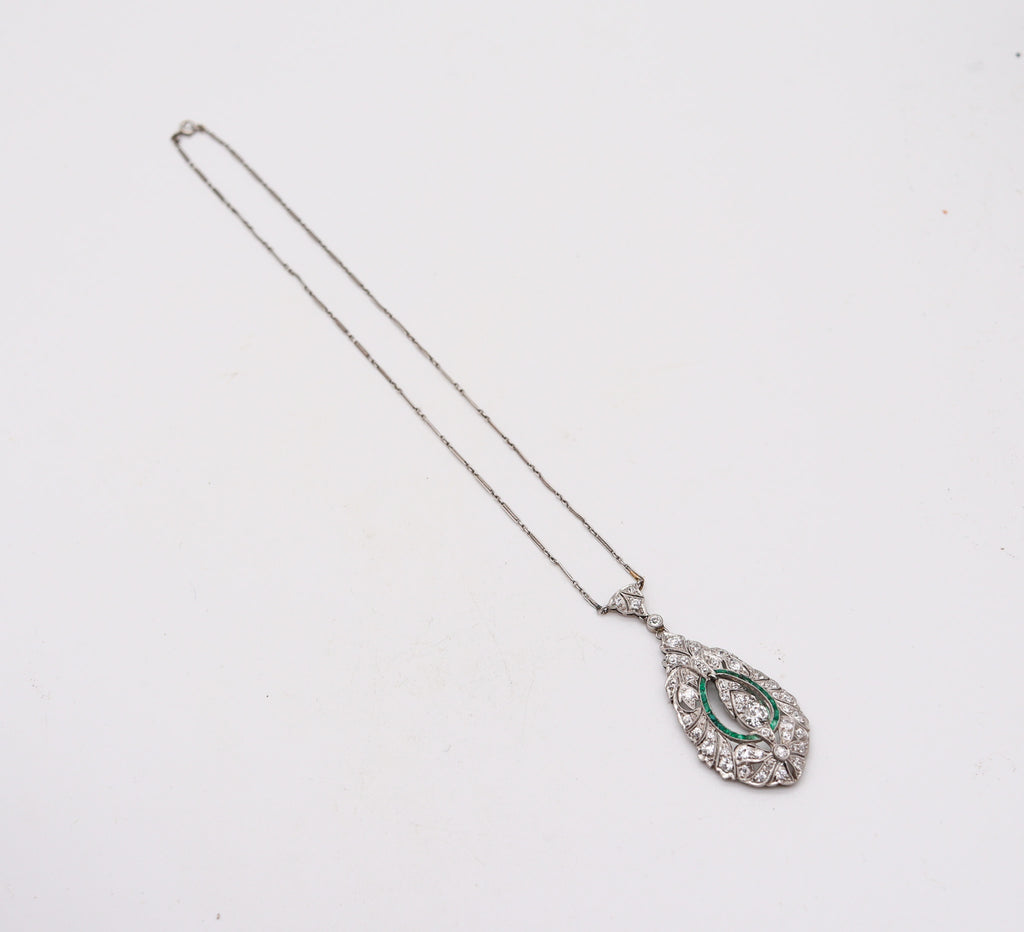 Art-Deco 1925 Platinum Necklace With VS Diamonds & Colombian Emeralds