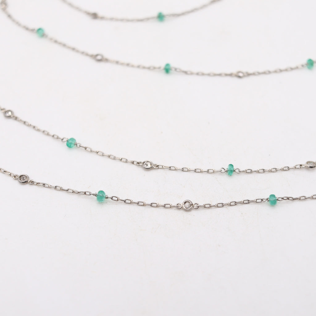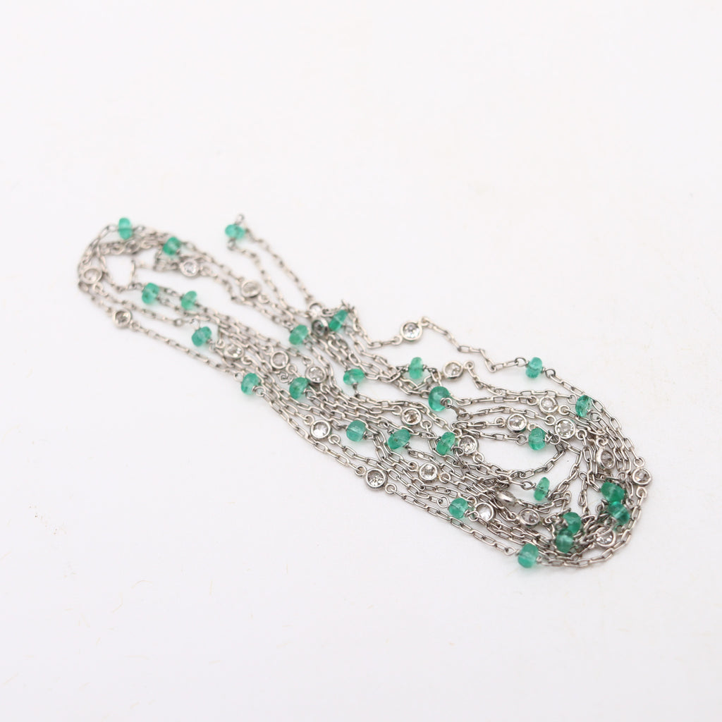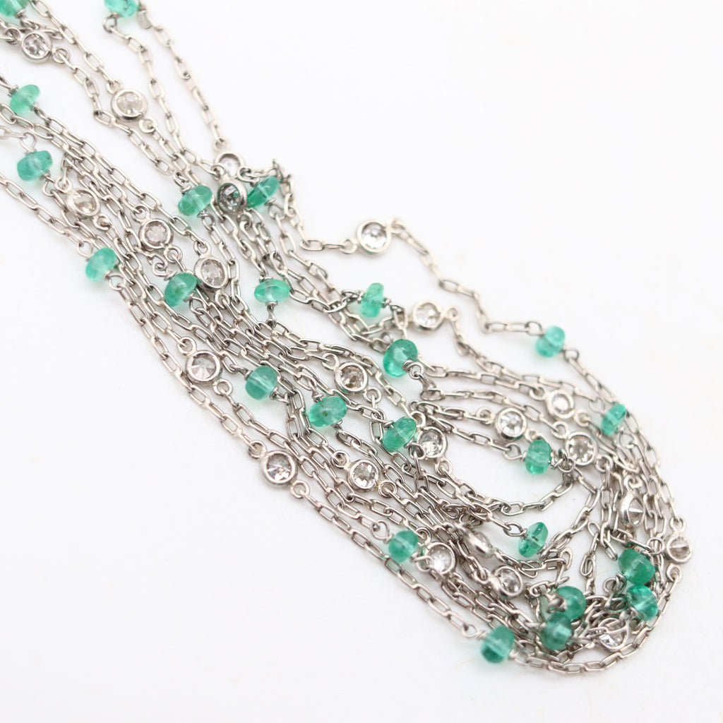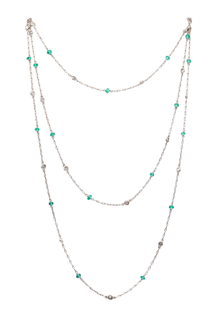 ART DECO 1935 Stations Necklace Sautoir In Platinum Diamonds & Emeralds