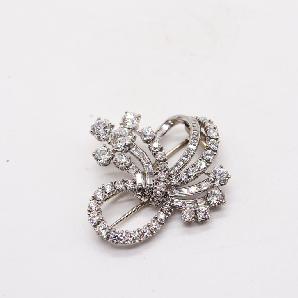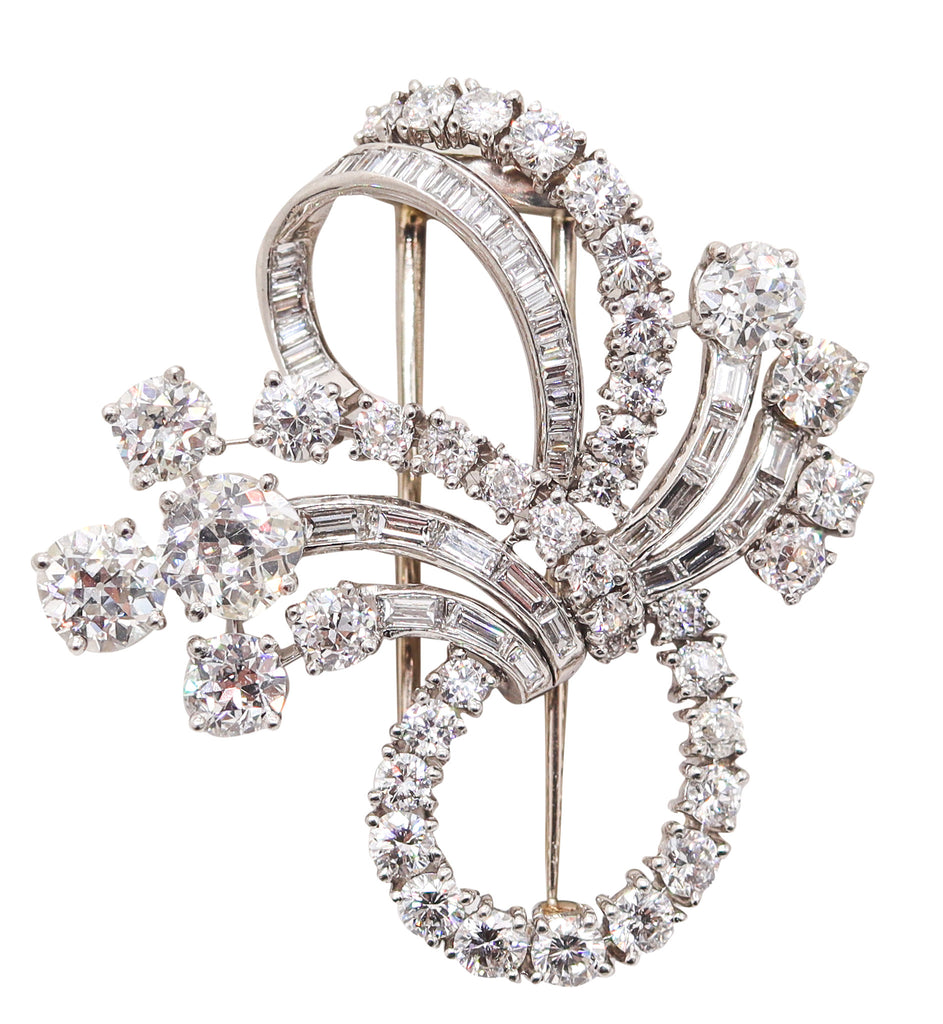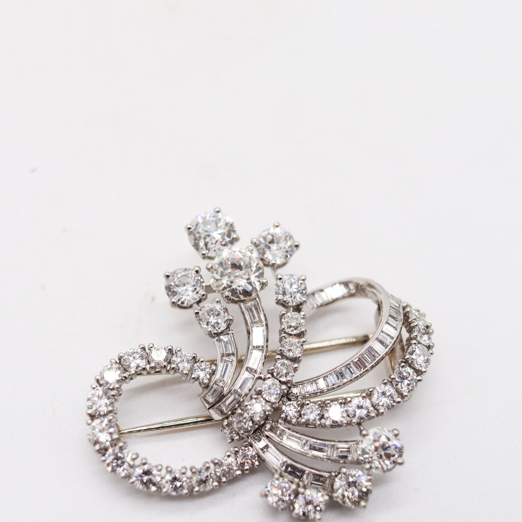 CARTIER 1940 Art-Deco Brooch In Platinum With 9.61 Cwt In VS Diamonds With Box