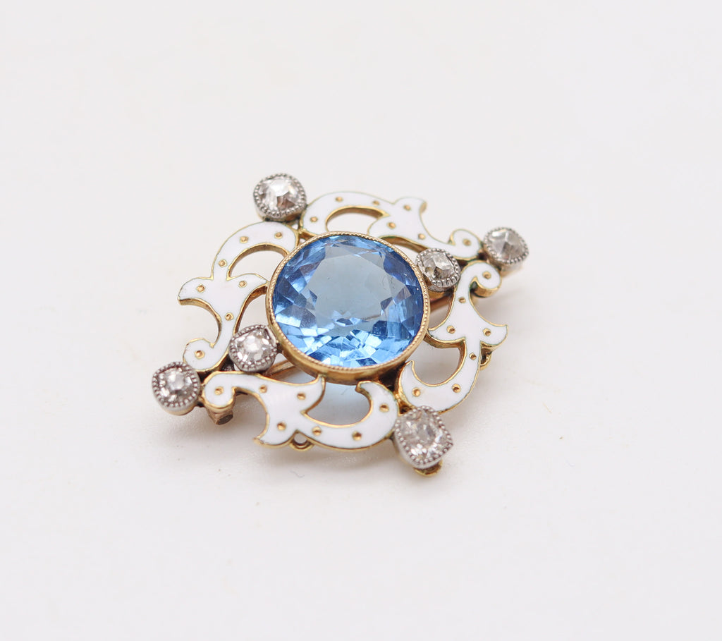 EDWARDIAN 1900 Enameled Pendant Brooch In 18Kt Platinum Diamonds & Aquamarine
