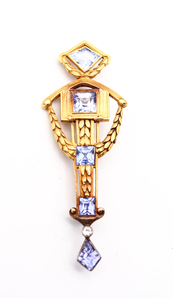FRENCH Belle Epoque 1900 Neo-Classic Pendant Brooch In 22Kt Gold & GIA Sapphires