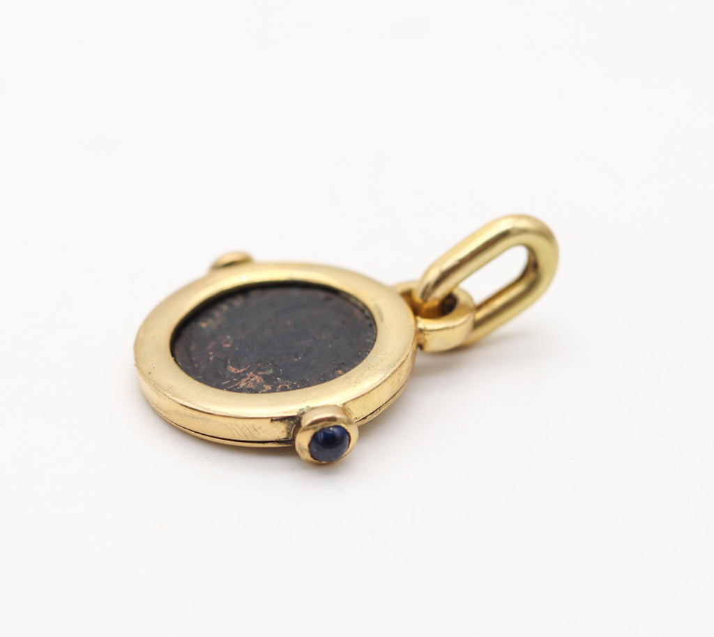 IMPERIAL ROME 320 AD Emperor Constantine Coin Pendant In 18Kt Gold & Sapphires