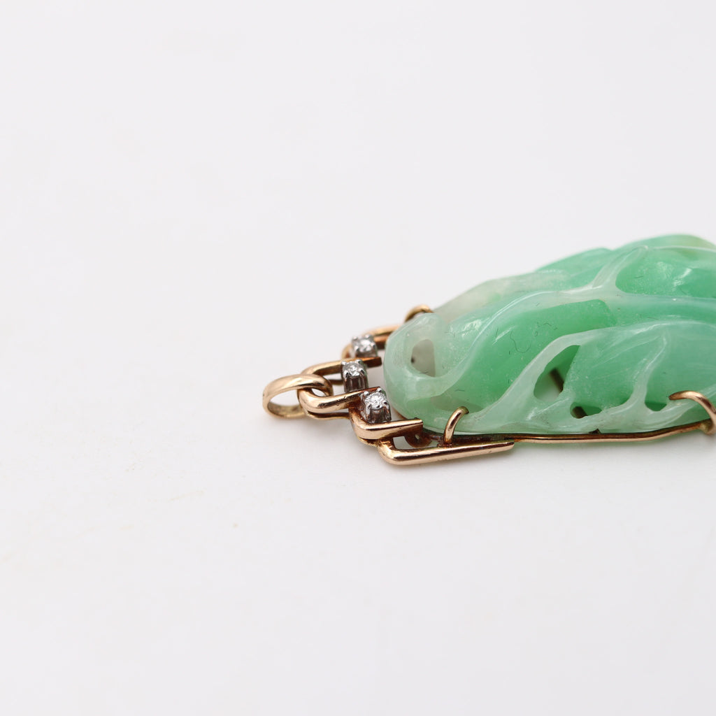 ORIENTALISM Pendant With Organic Motifs In 14Kt Gold 23.06 Cts Jade & Diamonds