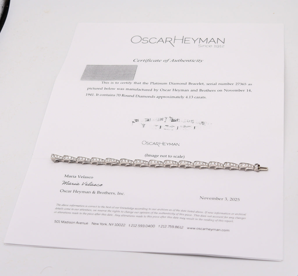OSCAR HEYMAN 1941 Art-Deco Riviera Bracelet In Platinum With 4.13 Ctw Diamonds