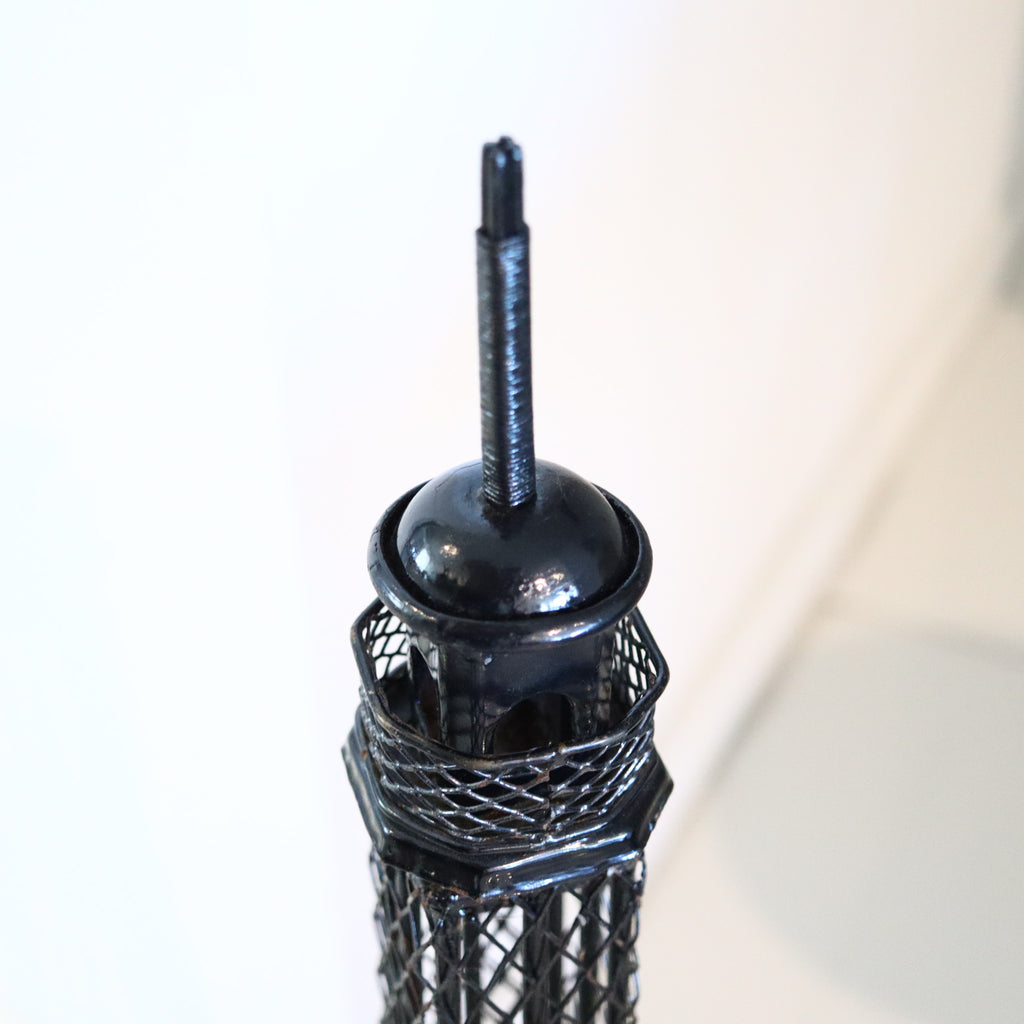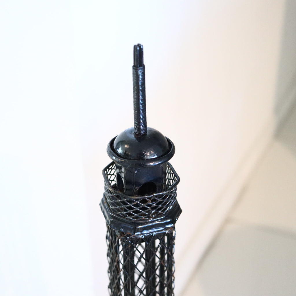 This is a beautiful tall sculpture of the tour Eiffel created in Europe during the mid-century period, back in 1950. Most probably hand-crafted in France with solid steel wires of different gauges, soldering and black paint. The tower is very well executed and highly detailed, and is in great condition with great eye appeal and antique patina. Excellent piece to any architect, engineer or collector of oversized models. This Tour-Eiffel will be amazing to decorate and accent your office or home.