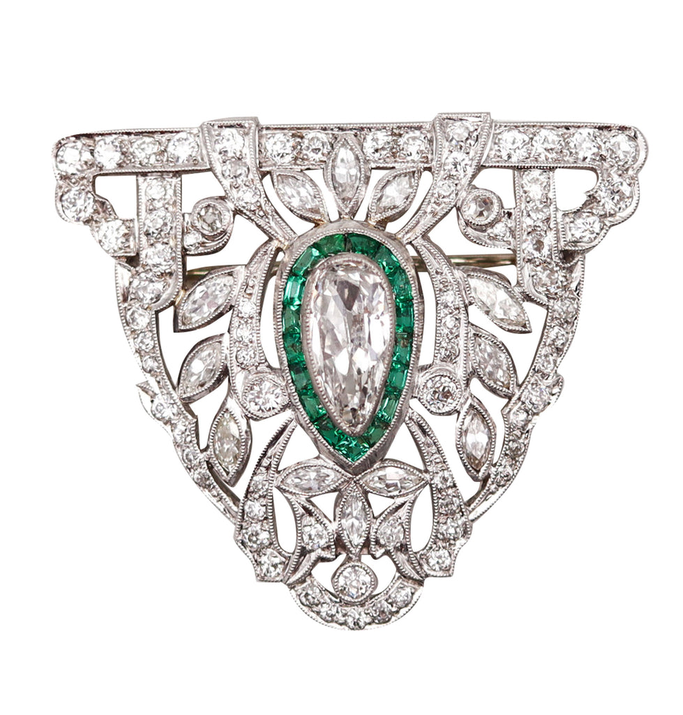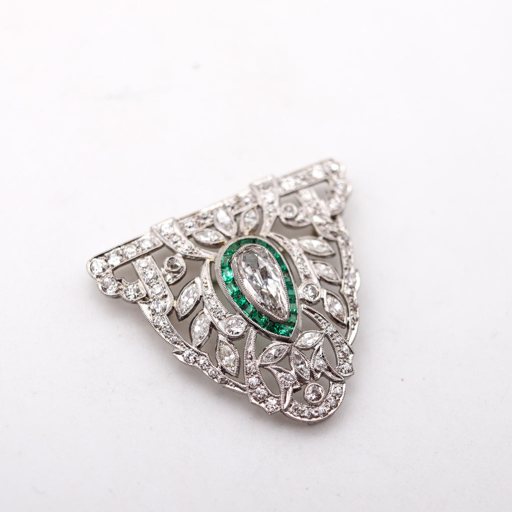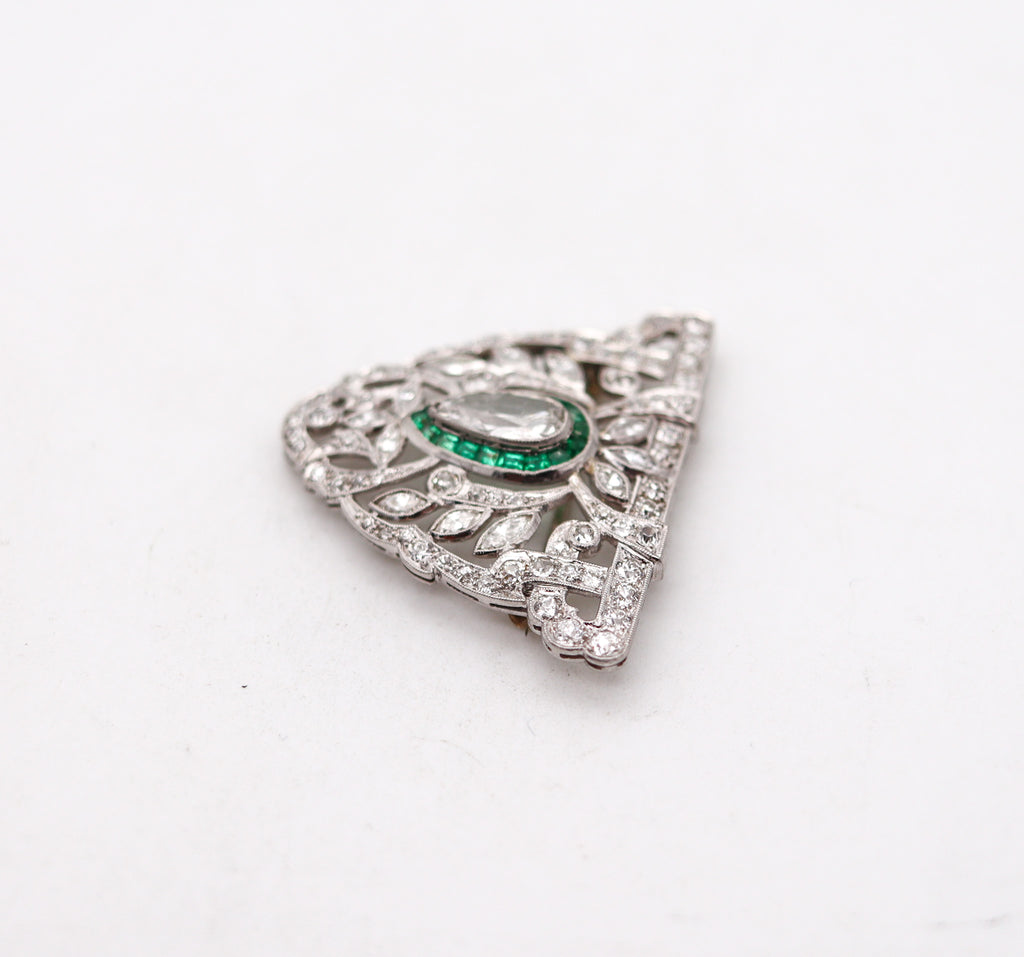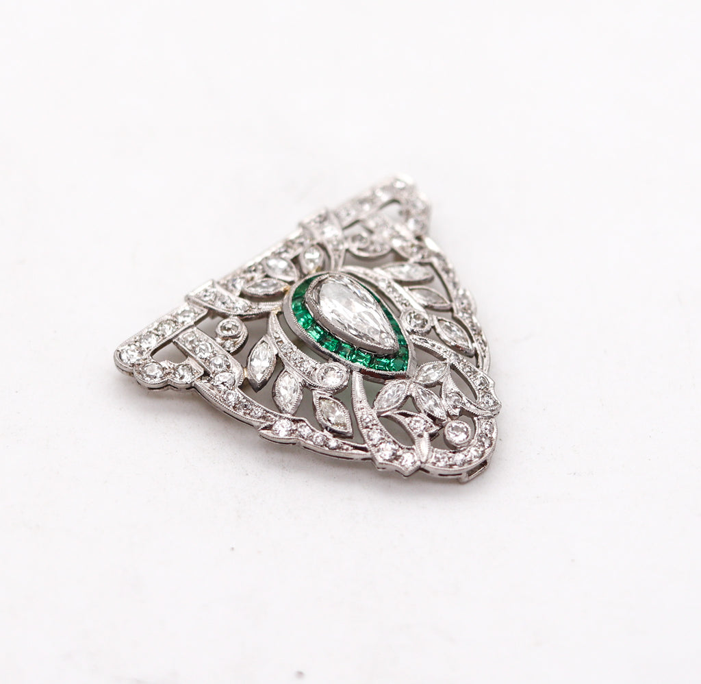 -Art Deco 1930 Pendant Brooch In Platinum With 5.01 Ctw In Diamonds And Emeralds