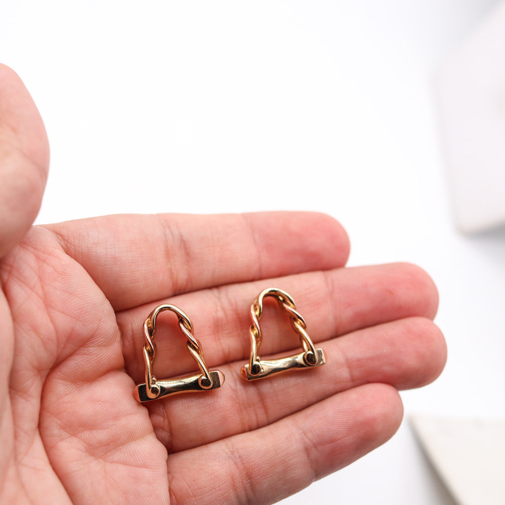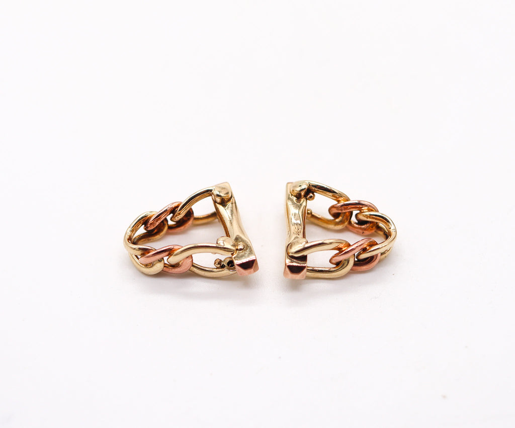 CARTIER London 1935 Art Deco Three-Color Stirrup Links Cufflinks In Solid 18Kt Gold