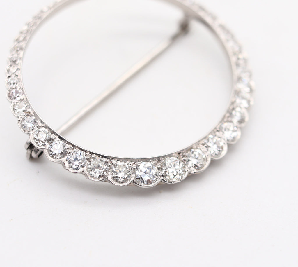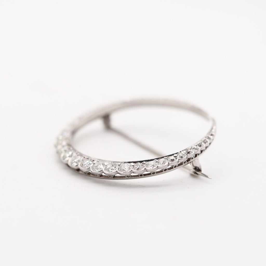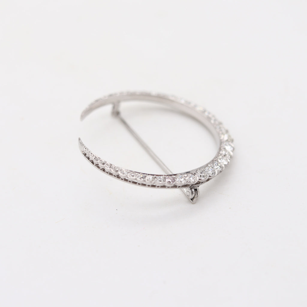 EDWARDIAN 1900 Antique Crescent-Moon Brooch Platinum And 2.96 Ctw In Diamonds