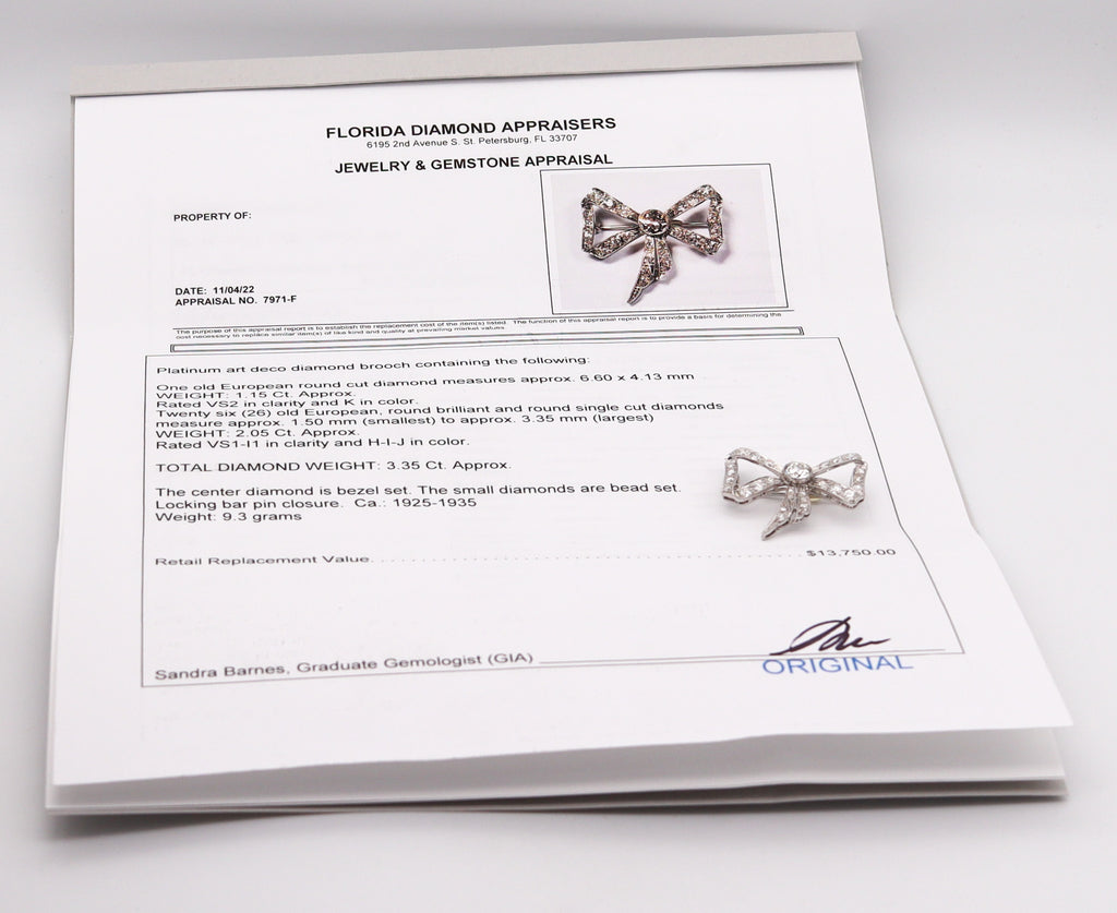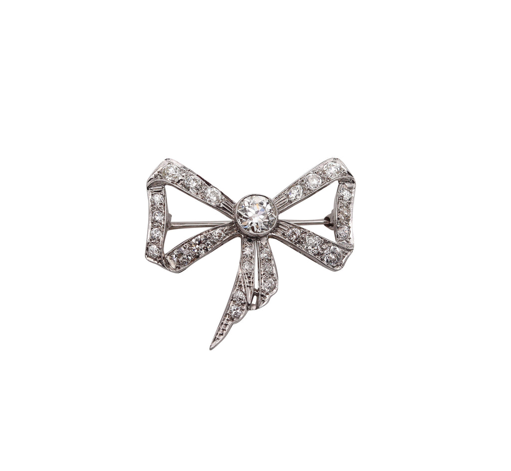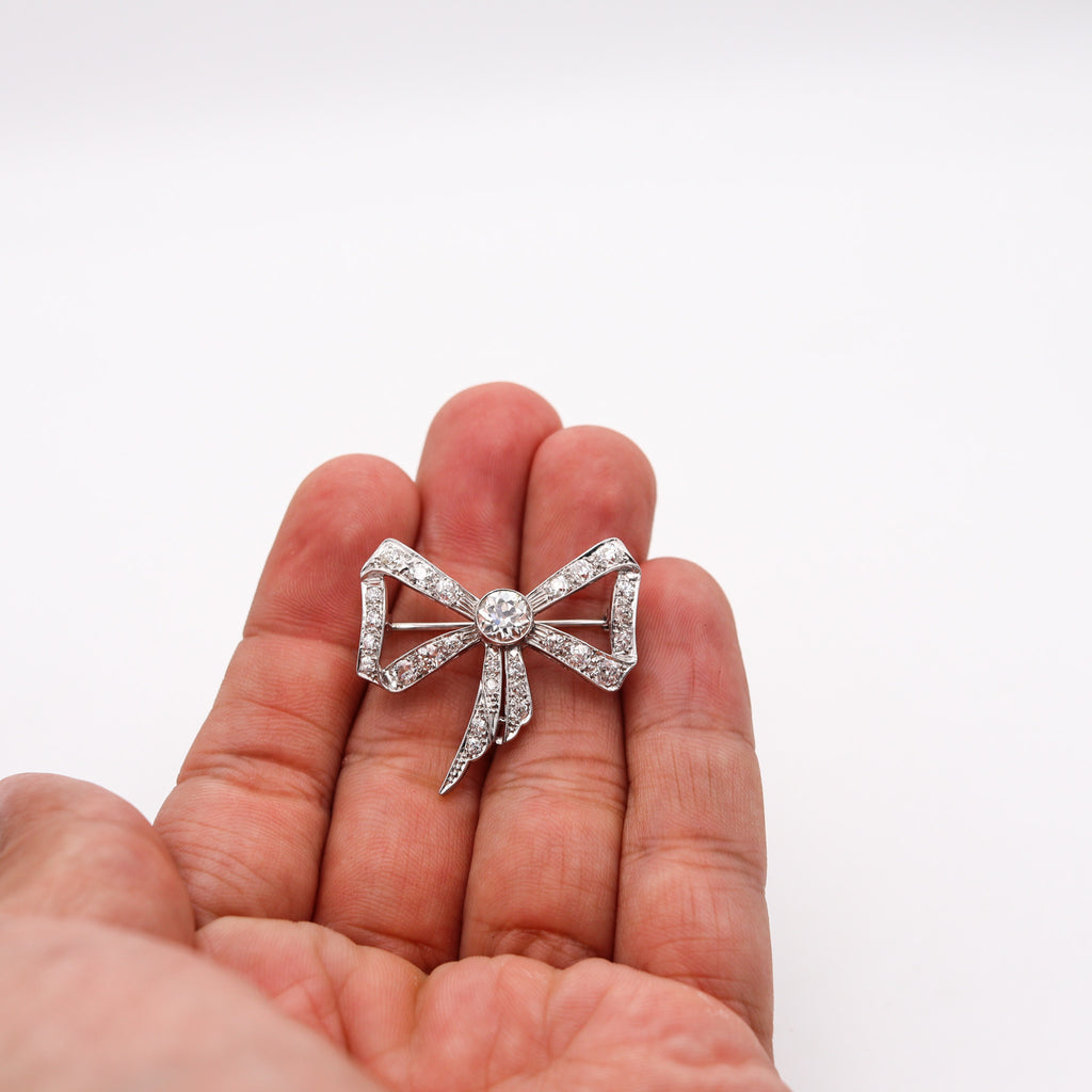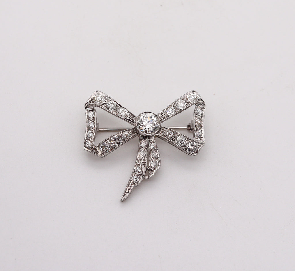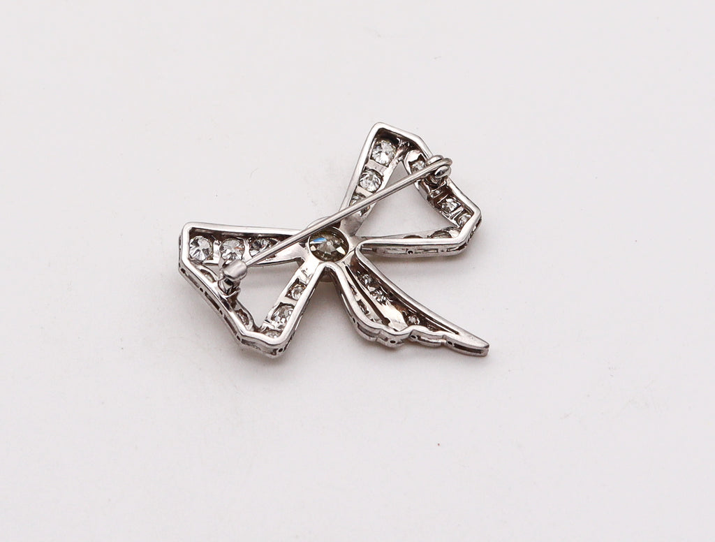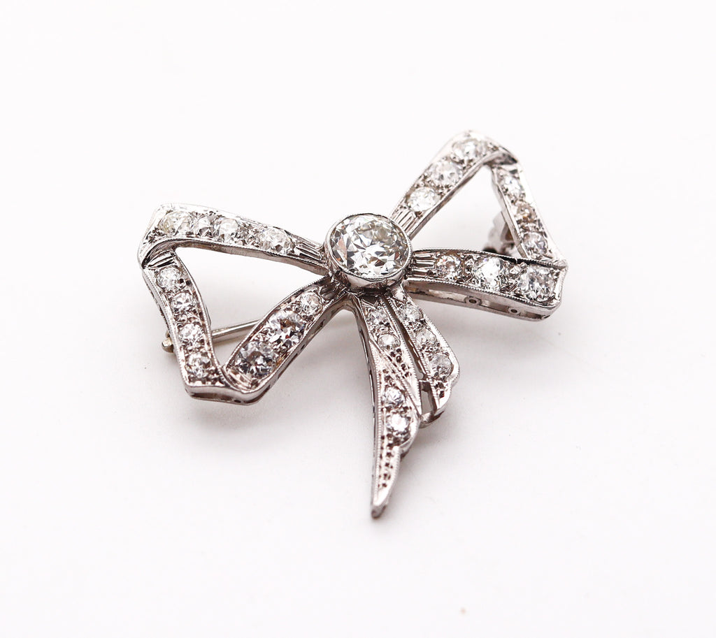 -Edwardian 1905 Belle Epoque Bow Brooch In platinum With 3.35 Ctw In Diamonds
