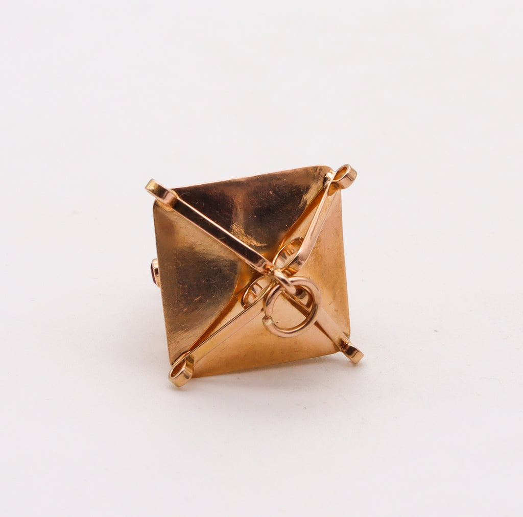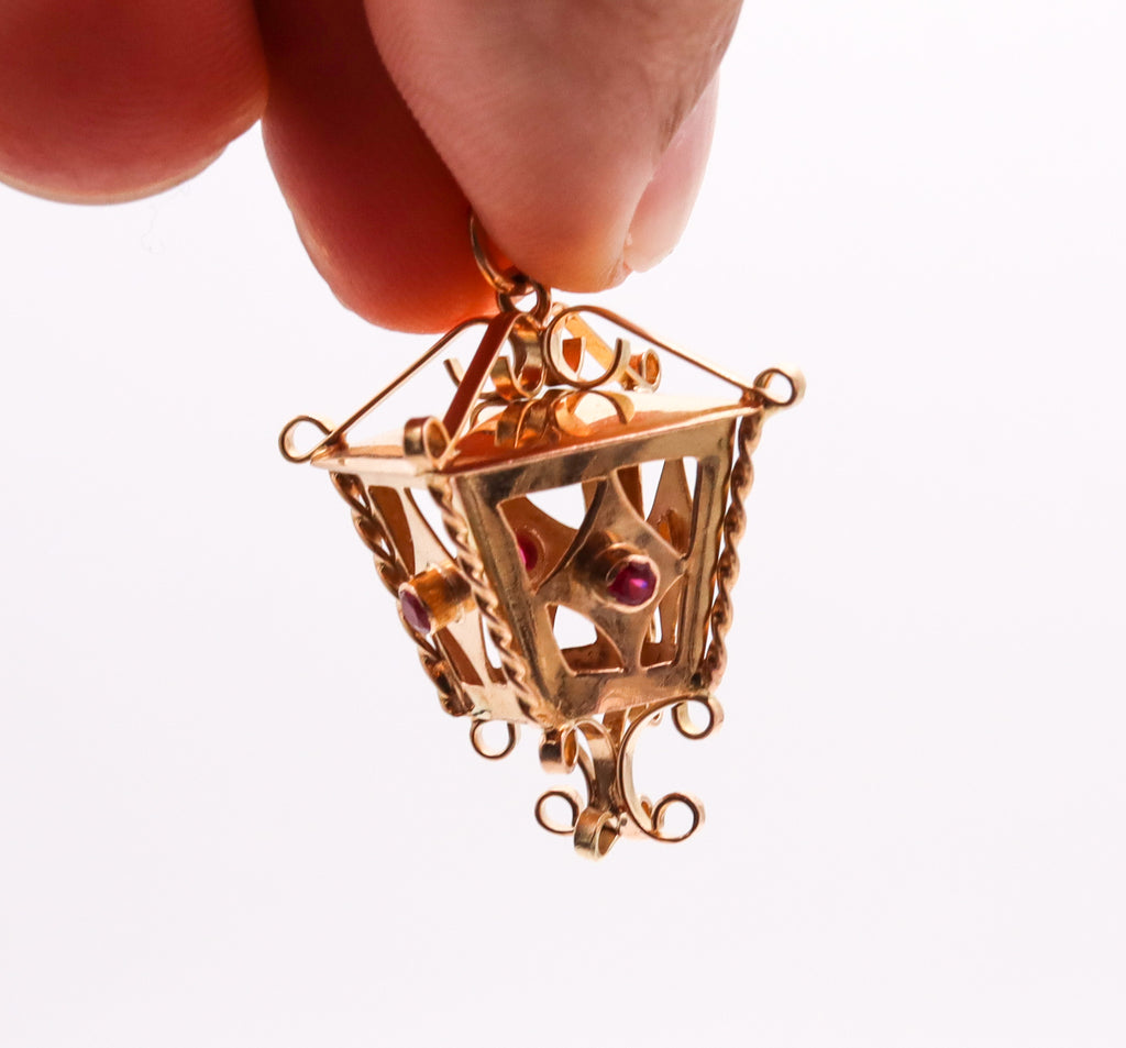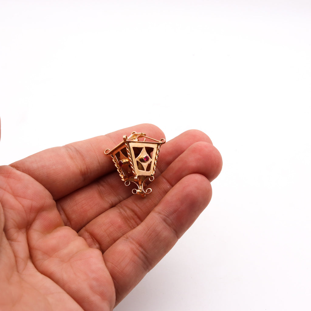 -Italian 1950 Lamp Charm For Bracelet In 14Kt Yellow Gold With Red Garnets