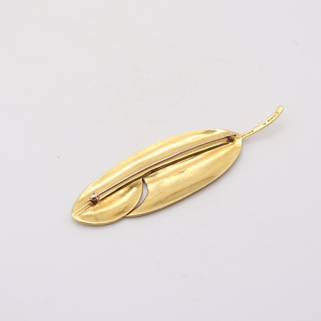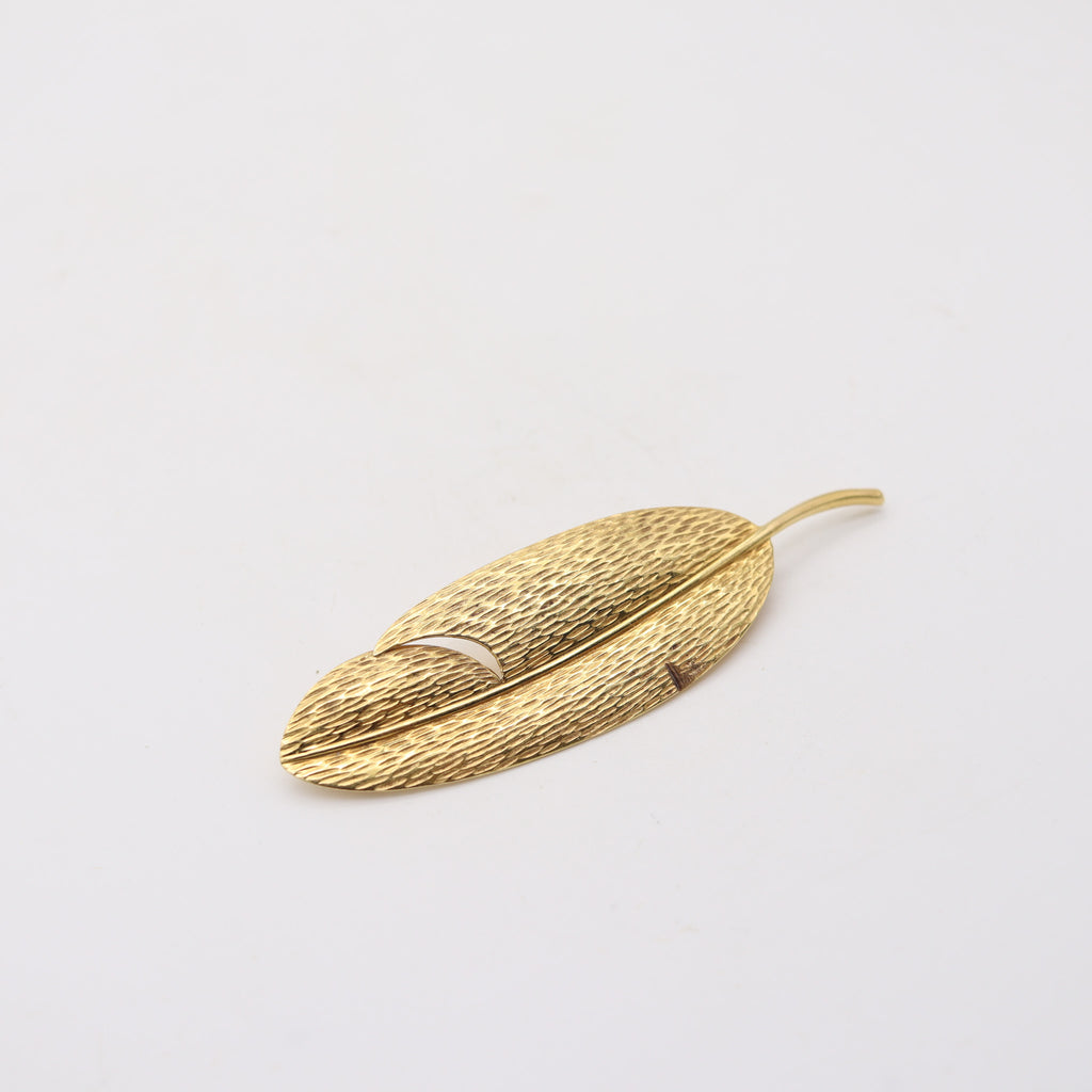 TIFFANY & CO. 1978 Angela Cummings Textured Feather Brooch In 18Kt Yellow Gold