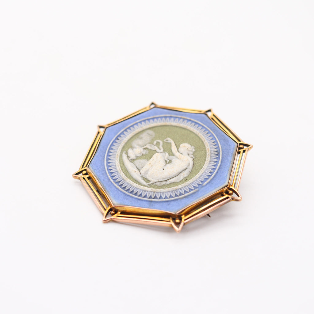 WEDGWOOD 1900 Edwardian Octagonal Cameo Pendant-Brooch In 9Kt Yellow Gold
