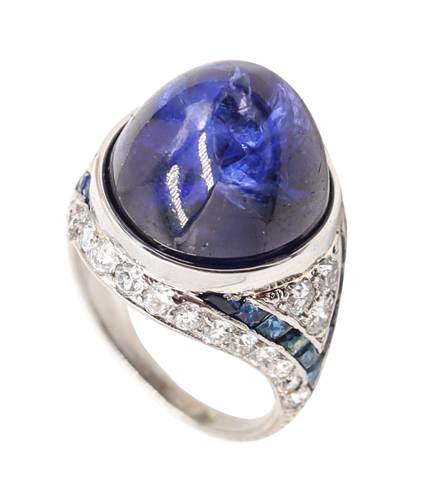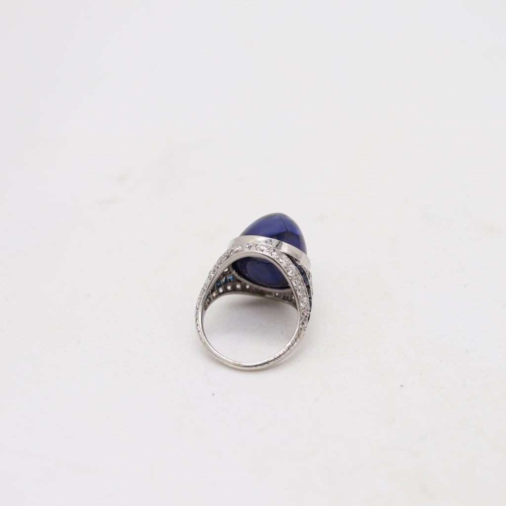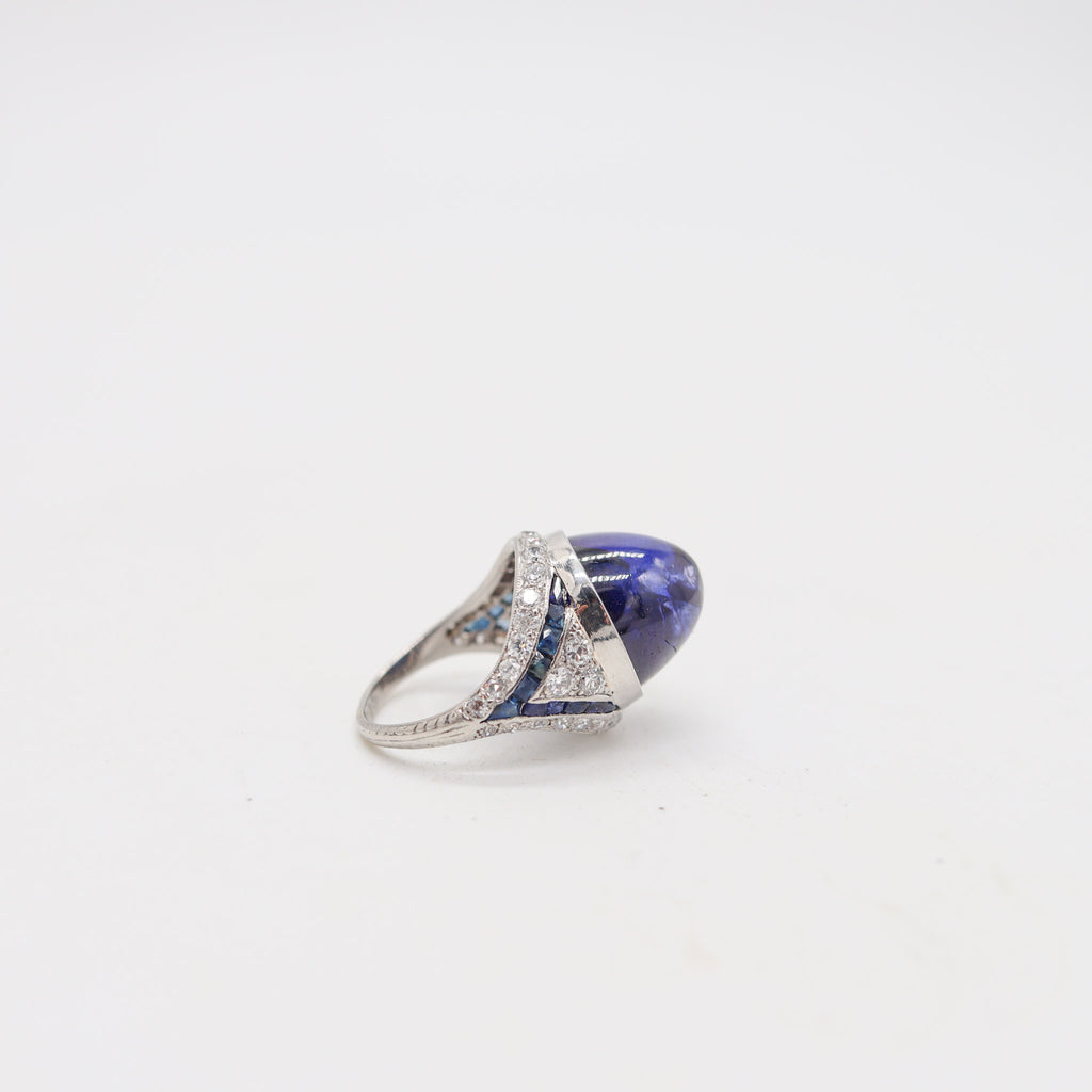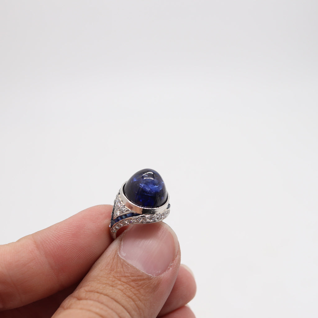 ART DECO 1920 Platinum Cocktail Ring With 26.65 Cwt. In Sapphires And Diamonds