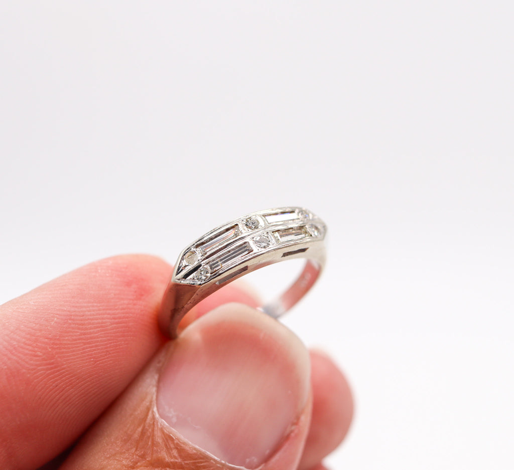 ART-DECO 1935 Antique Band Ring In 14Kt White Gold With VS Diamonds