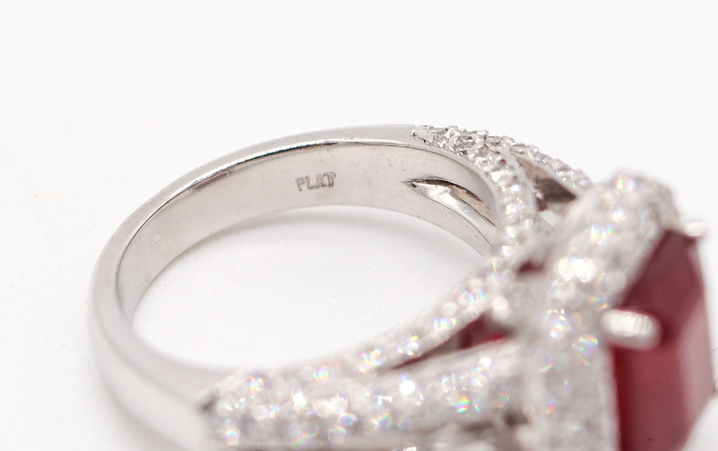 PLATINUM Classic Cocktail Ring With 4.84 Ctw In Vivid Red Ruby And VS Diamonds
