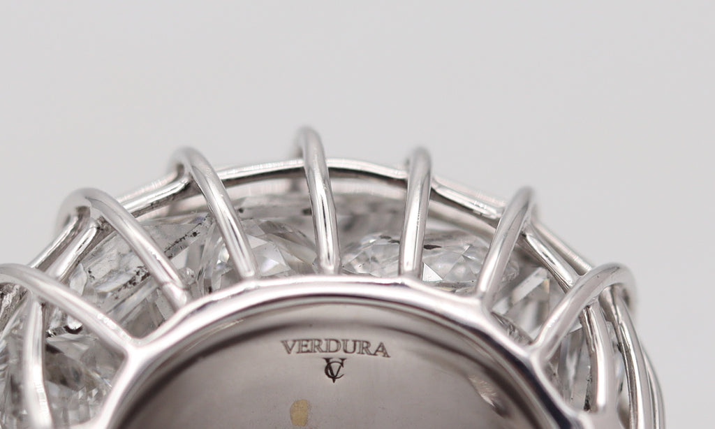 Hallmarks: Stamped with the maker's mark monogram, the mark for the assay and warranty of the 18kt white gold and signed as follows, "VERDURA .750".