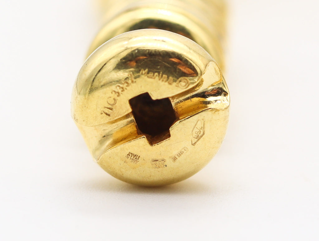 Hallmarks: Stamped with Italian control marks; the maker's mark, the mark for the assay and warranty of the 18kt yellow gold, the seven-digits serial numbers and signed in full as follows, "©MARINA B. MB MADE IN ITALY .750 71C3357".