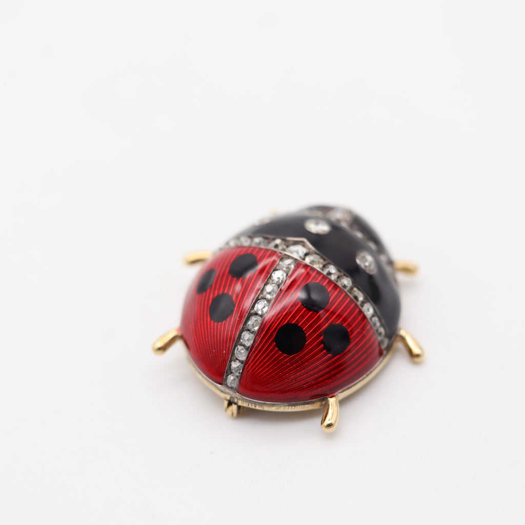 ANNA RINGE For FABERGE 1908 Large Enameled Ladybug Brooch 14Kt Gold & Diamonds