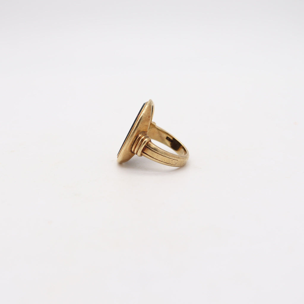 JONES & WOODLAND CO. 1930 Art Deco Signet Ring In 14Kt Yellow Gold & Bloodstone