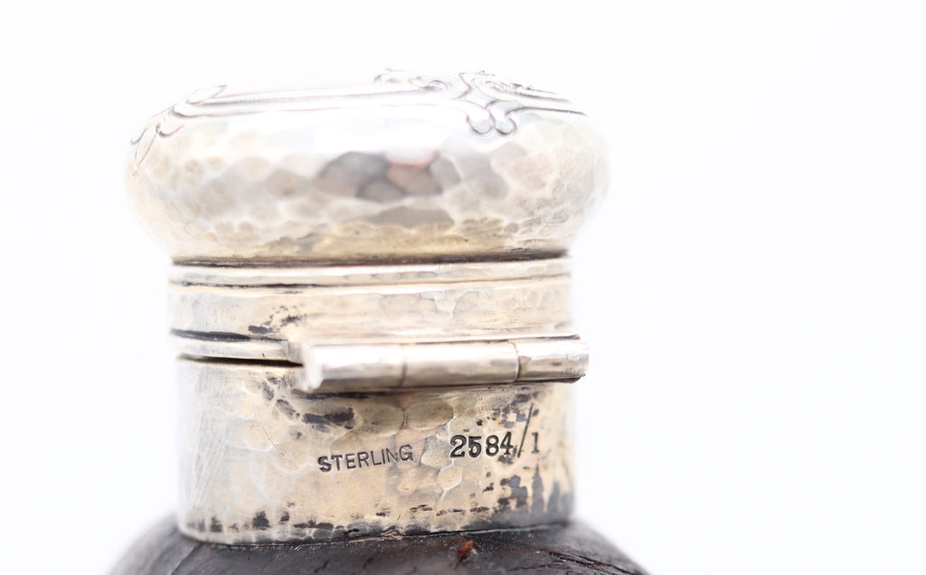 ConditionThe overall condition of this Gorhan liquor flask is very good. Beside the little normal wear, there is no damage to the silver or the glass. This flask has been carefully inspected to guarantee the condition and authenticity.