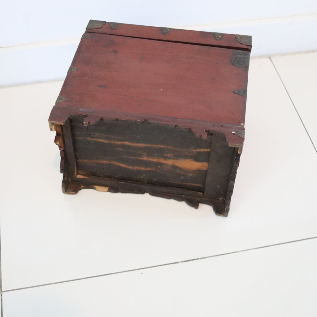 KOREAN 1880 Joseon Dynasty Writing Table Box In Reddish Patinated Wood & Bronze