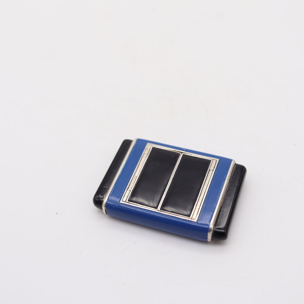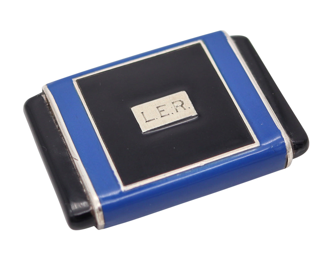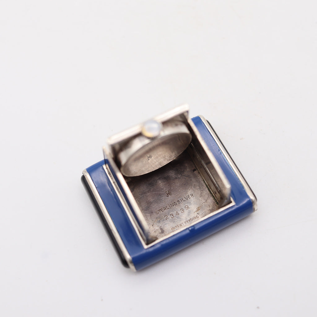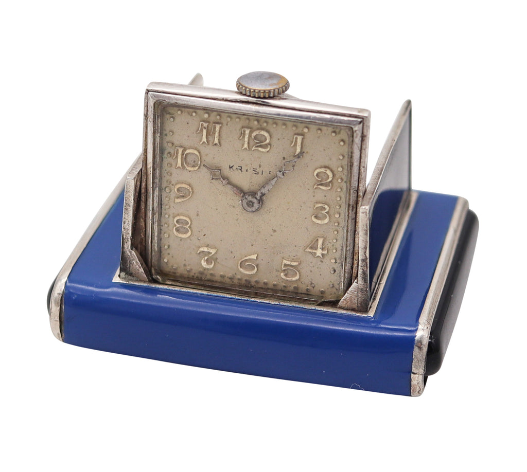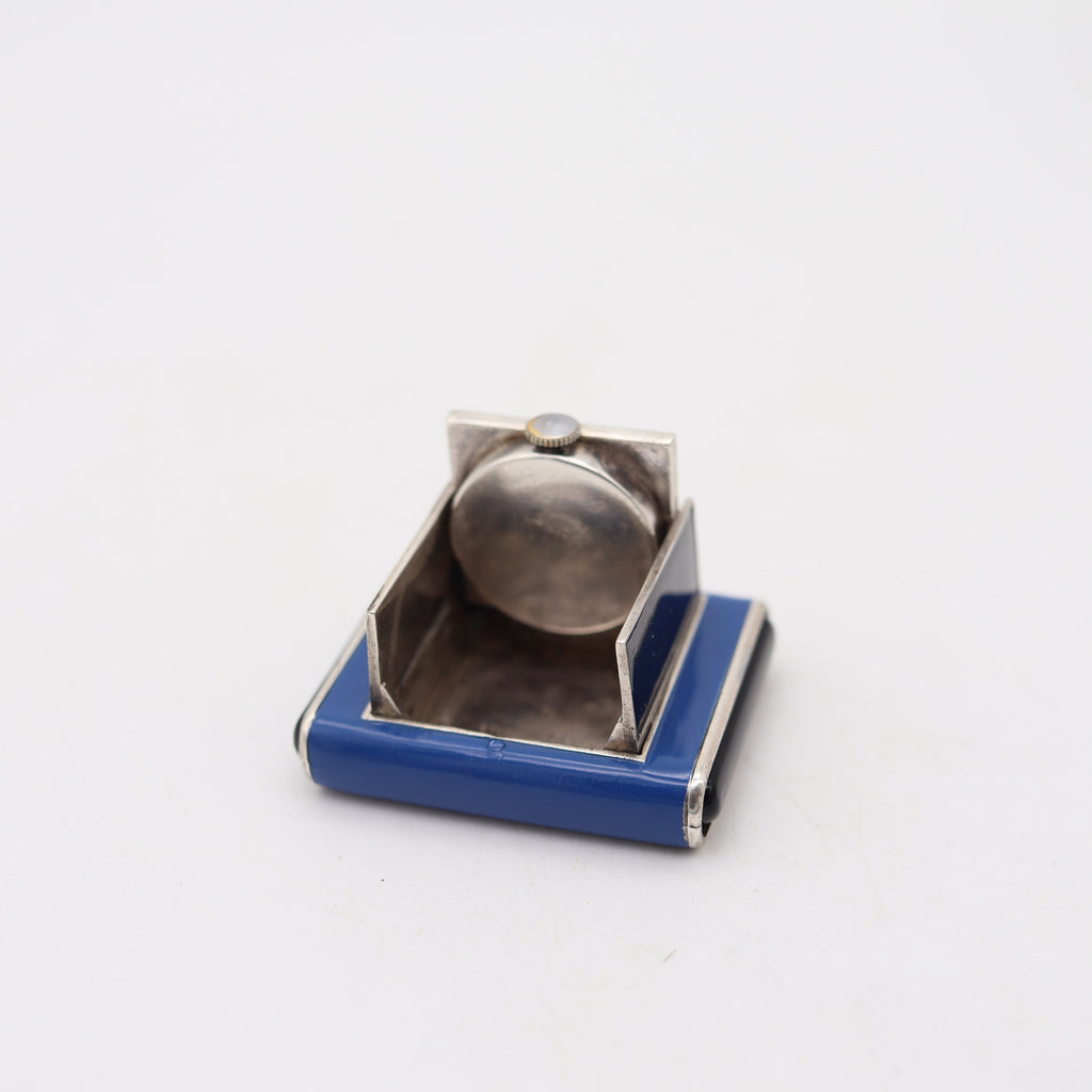 LA CAPTIVE 1930 Art Deco Enameled Squeeze Travel Clock In .925 Sterling Silver