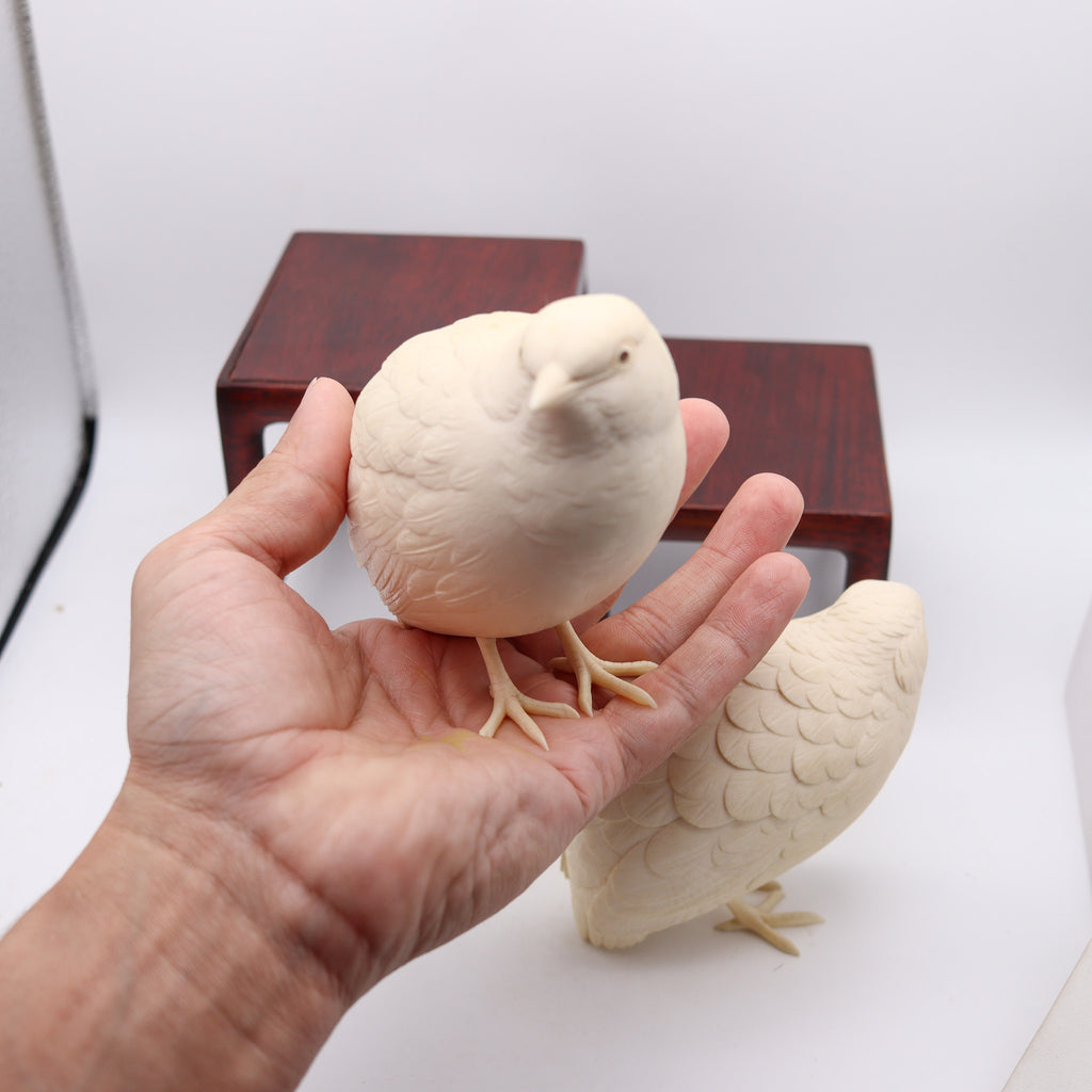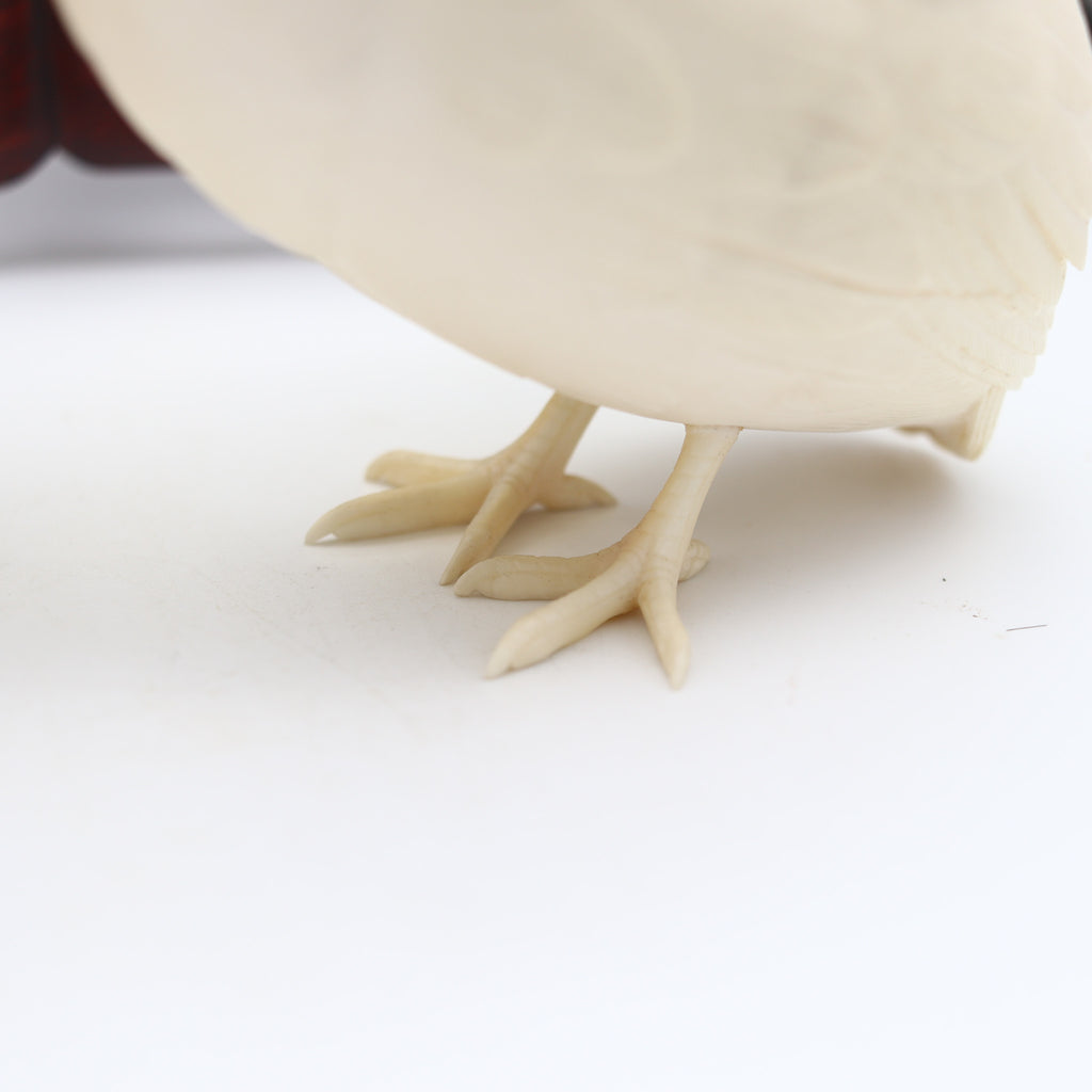 MEIJI 1890 Presentation Okimono Carved Pigeons In Wood Base Signed By The Artist