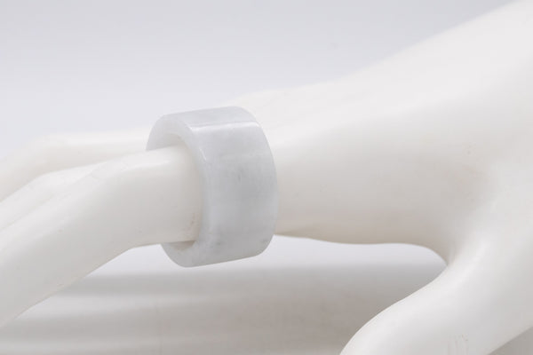 A vintage plain ring, carved from a single piece of natural bluish-white jadeite jade.