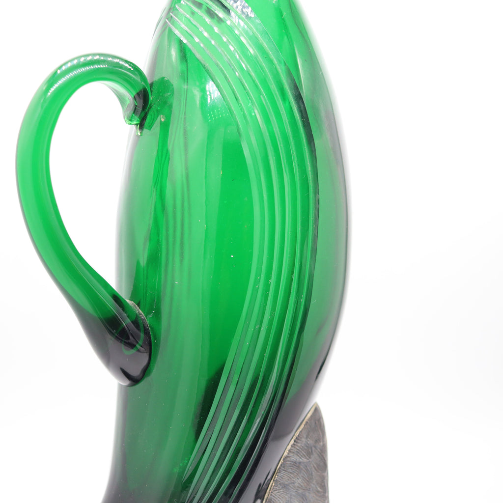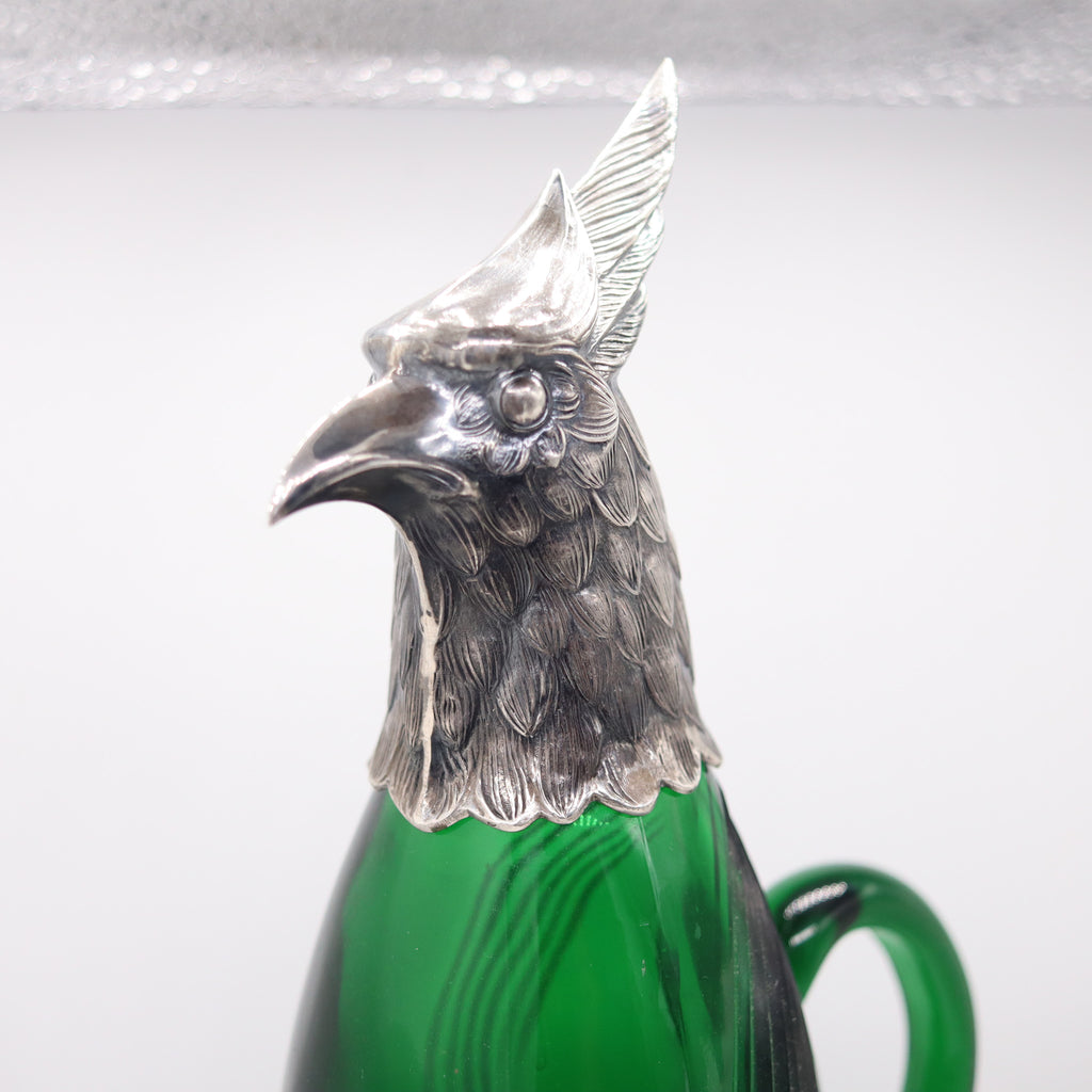SPANISH 1930 Art-Deco Falcon Shaped Claret Wine Jar In Green Cut Glass & Sterling