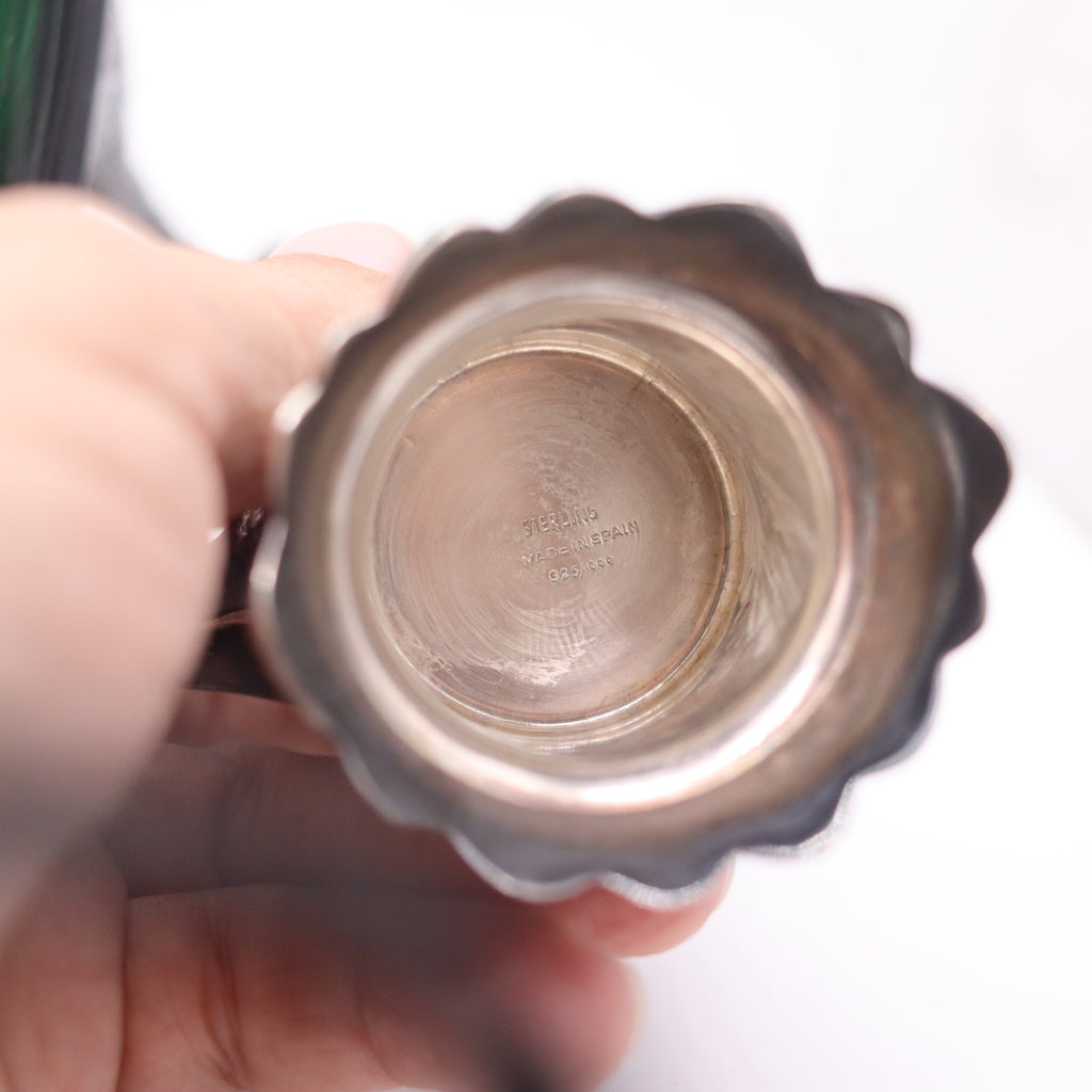 Hallmarks: All silver parts are stamped with Spanish marks; the pre marks (1934) for the assay and warranty of the .925/.999 silver and signed in full as follows, "MADE IN SPAIN STERLING SILVER .925/000".